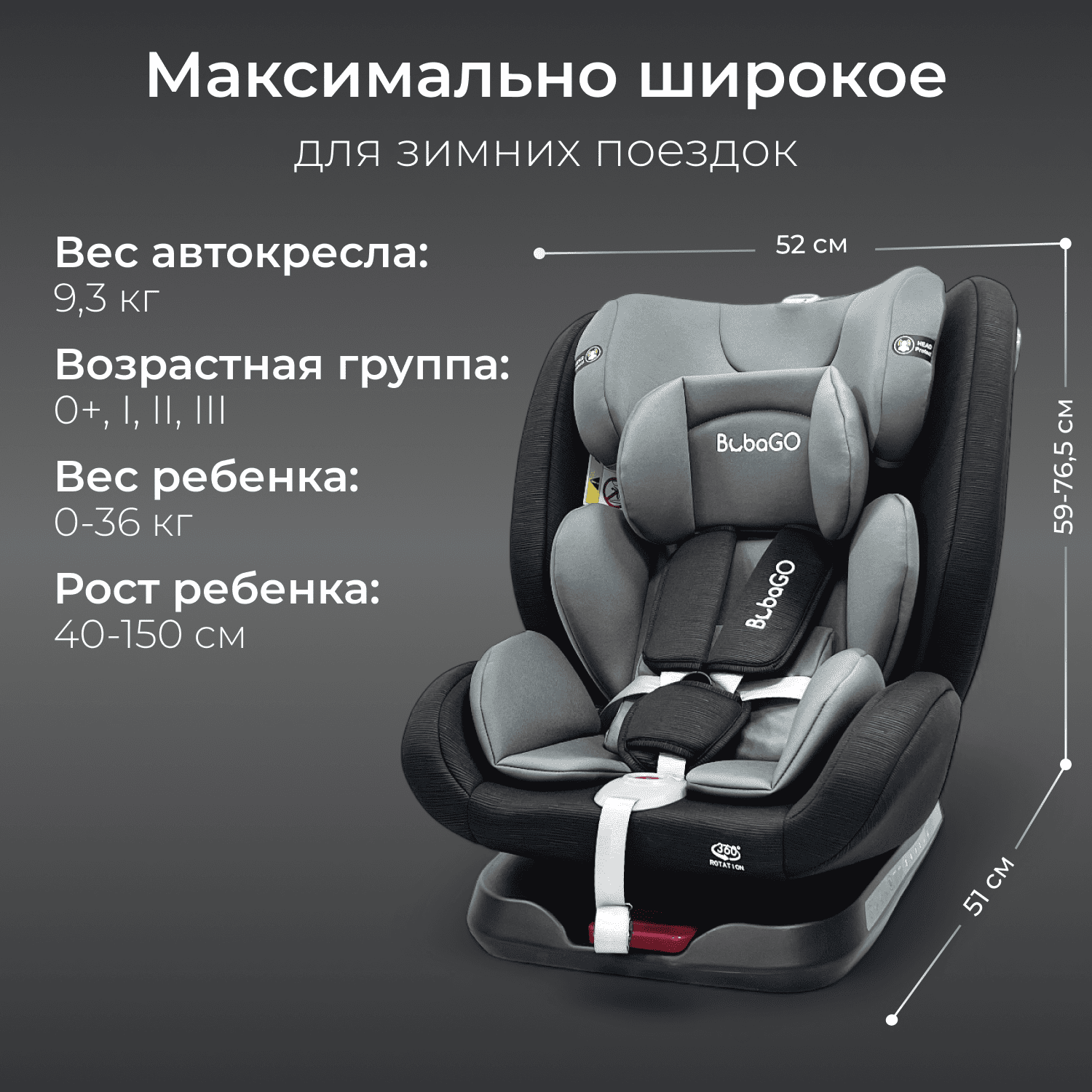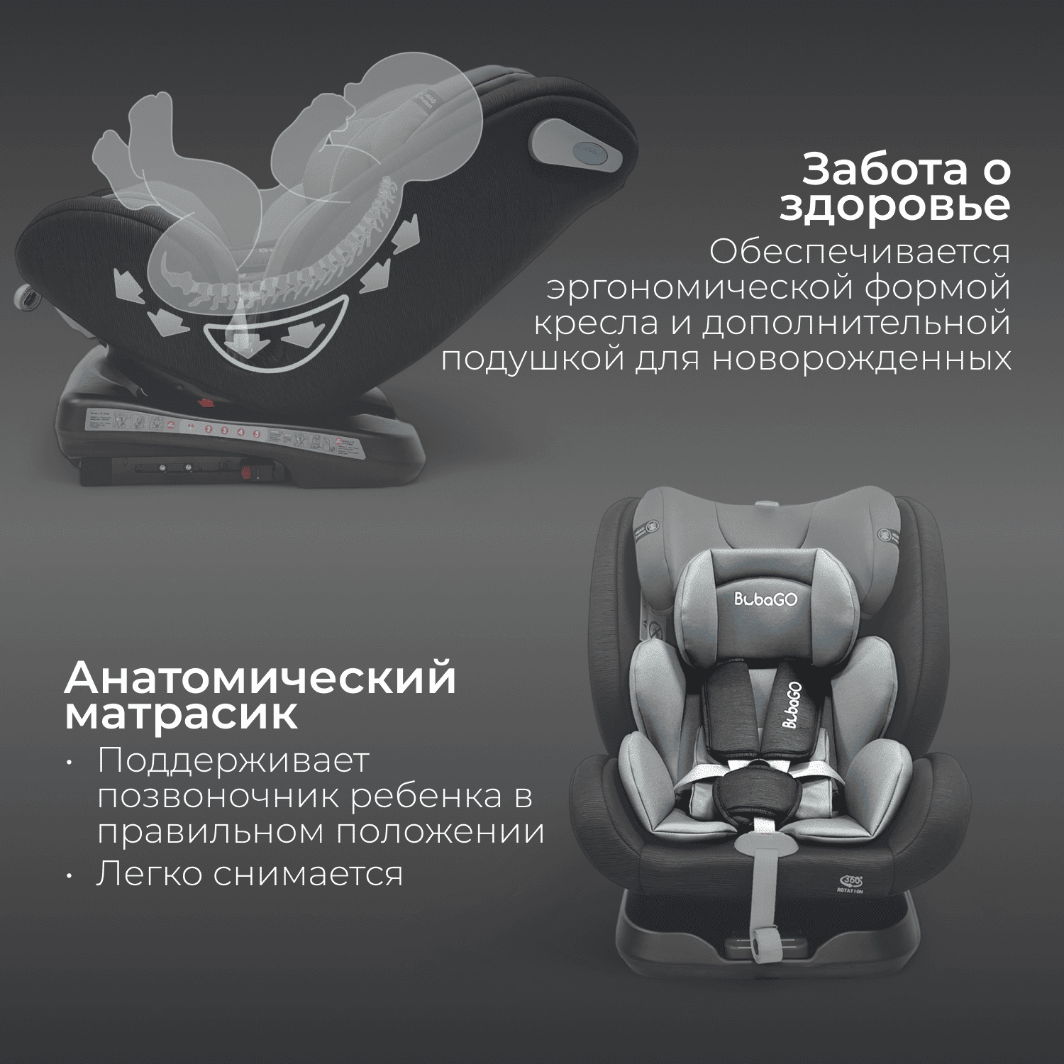 Детское автокресло BubaGO Noxa — универсальное кресло 0–36 кг с поворотом 360°, креплением Isofix + Top Tether и соответствием европейскому стандарту безопасности ECE R44/04.