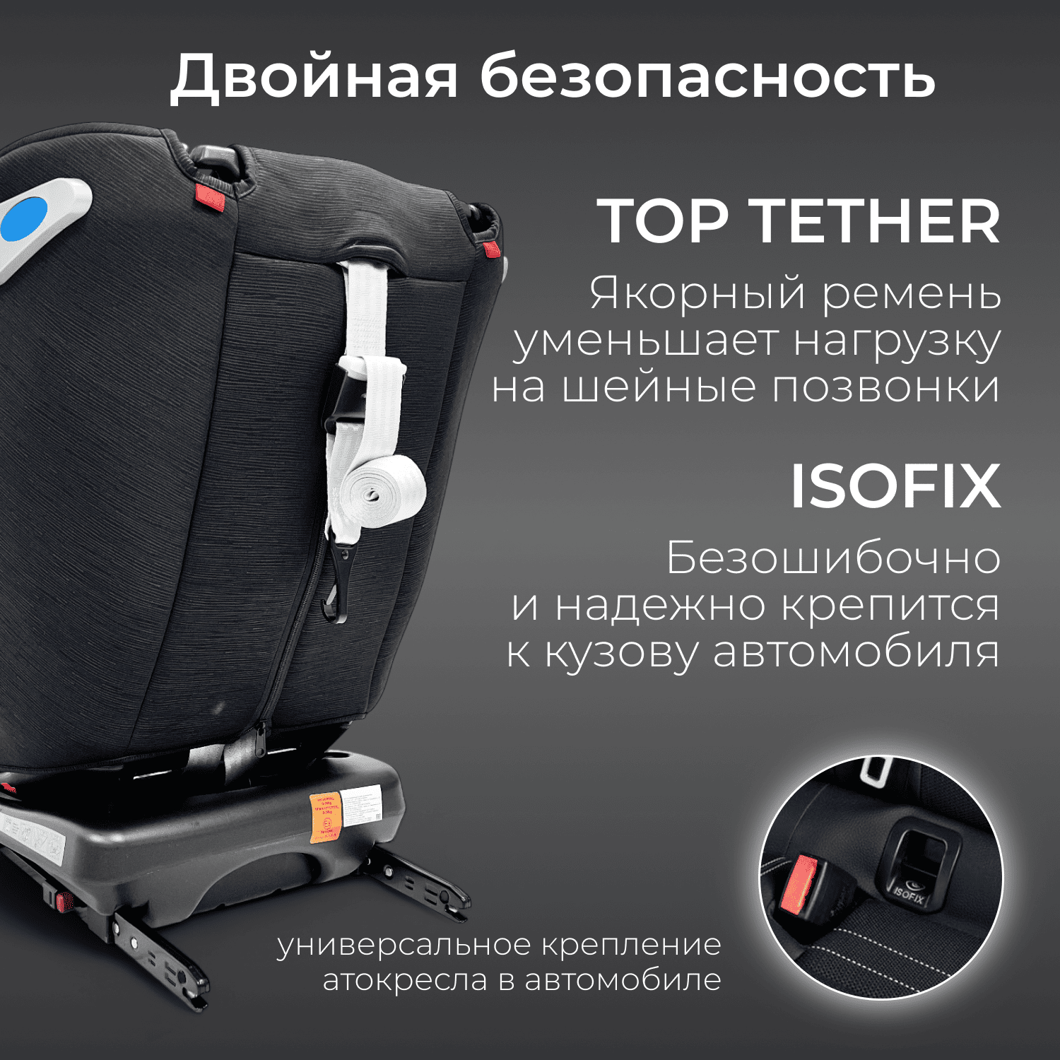 Крепление Isofix + Top Tether обеспечивает жёсткую фиксацию и исключает неправильную установку.