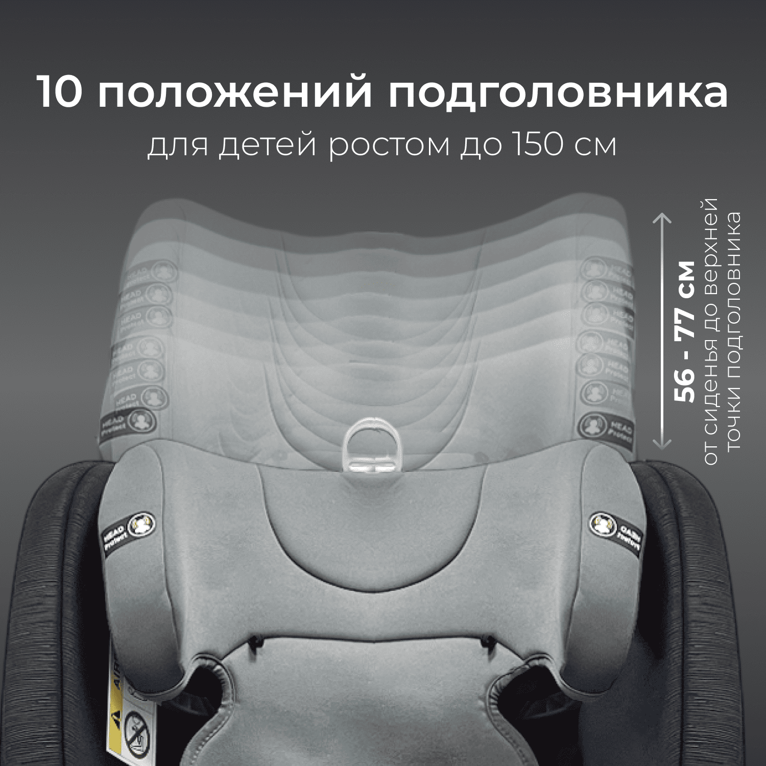 10 положений высоты подголовника позволяют точно подстроить кресло под рост ребёнка.