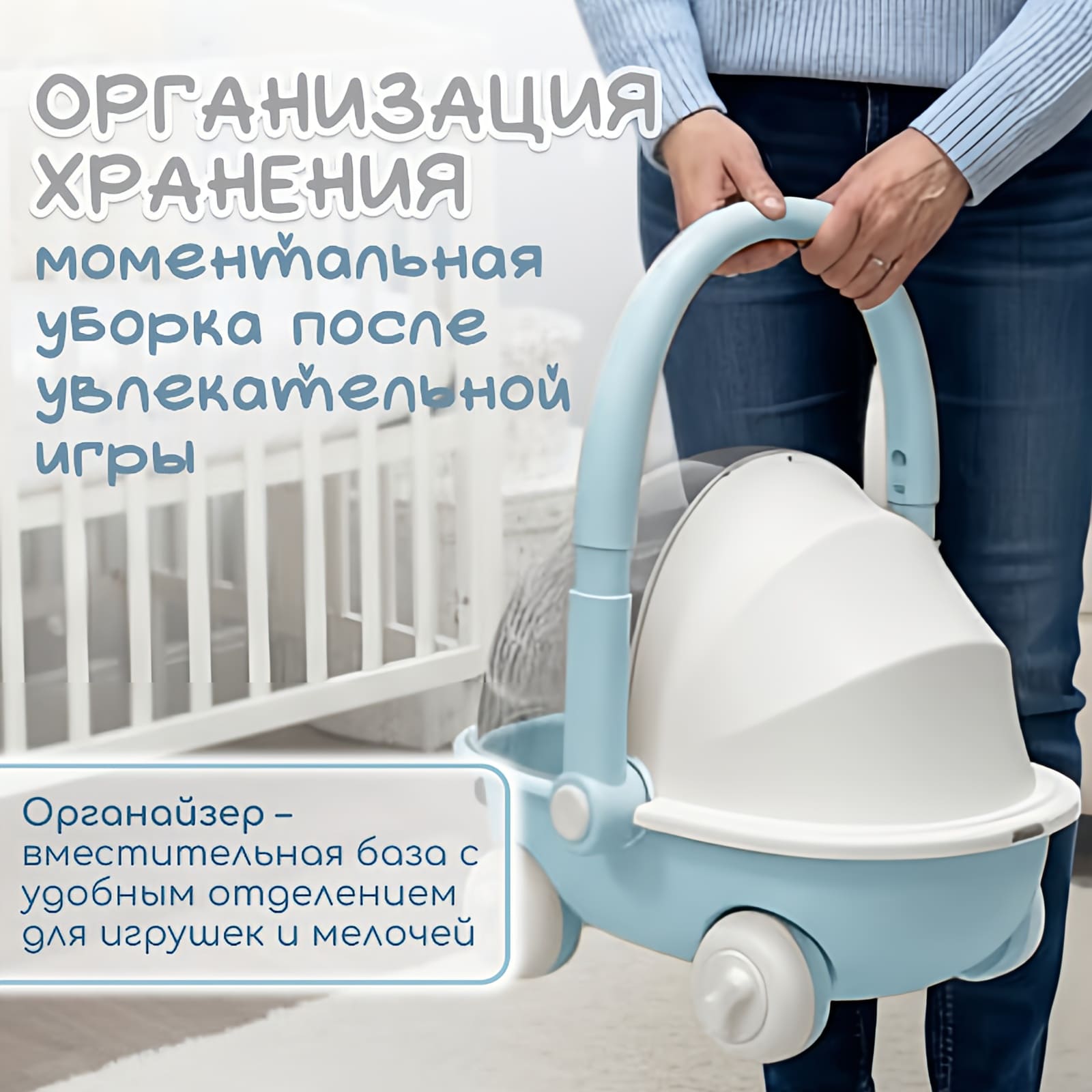 • Органайзер – внизу расположена вместительная база с удобным отделением, где можно хранить любимые игрушки и необходимые мелочи.