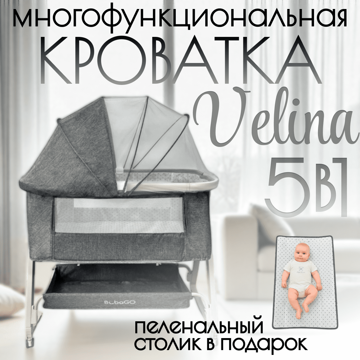 BubaGO Velina 5 в 1 — это многофункциональная детская кроватка, которая объединяет в себе сразу пять полезных решений: