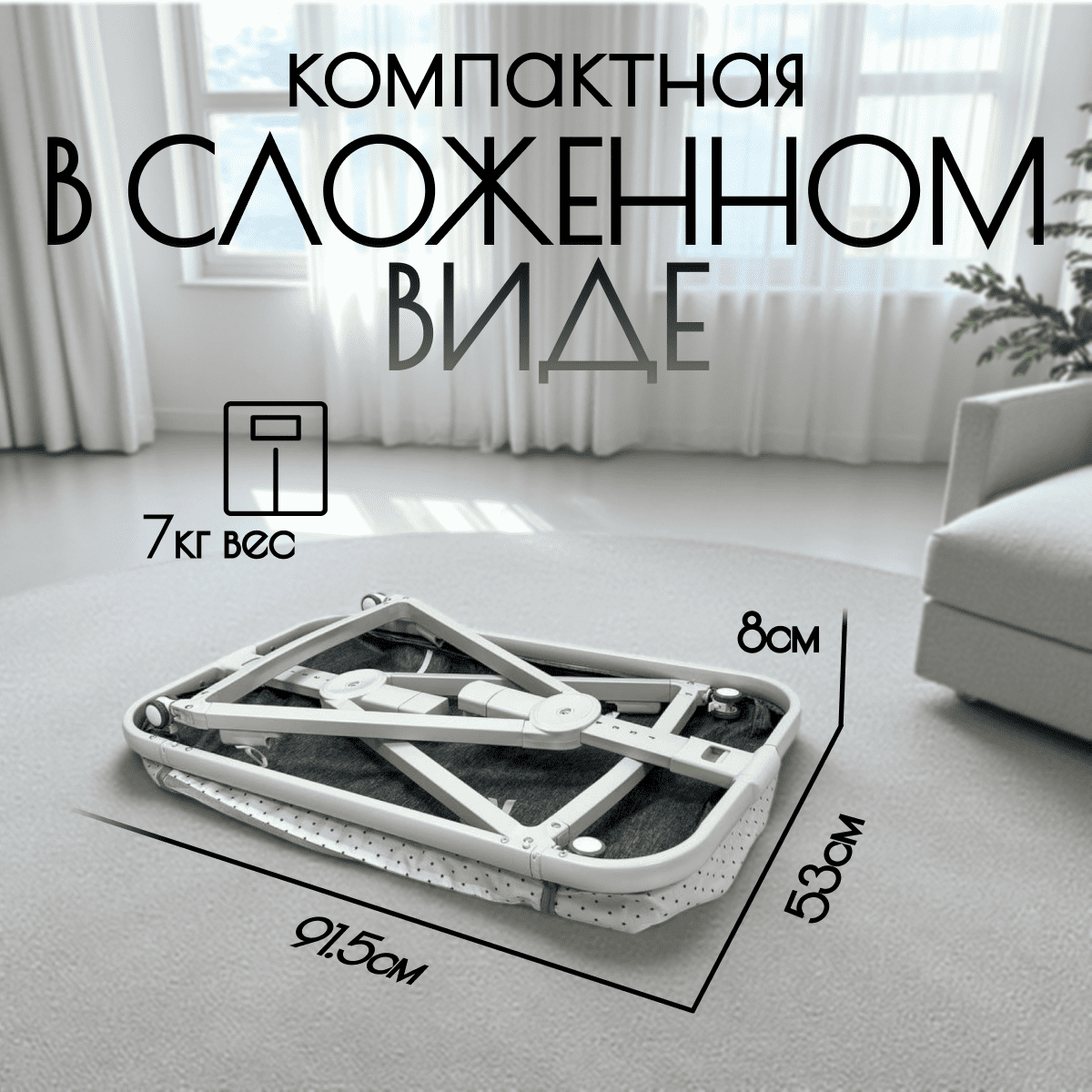 Компактная, складная конструкция, удобно брать в поездки и экономить место дома.