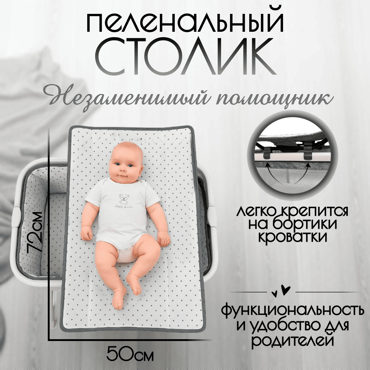 Удобный уход: пеленальный столик, корзина для вещей, полная комплектация «под ключ».
