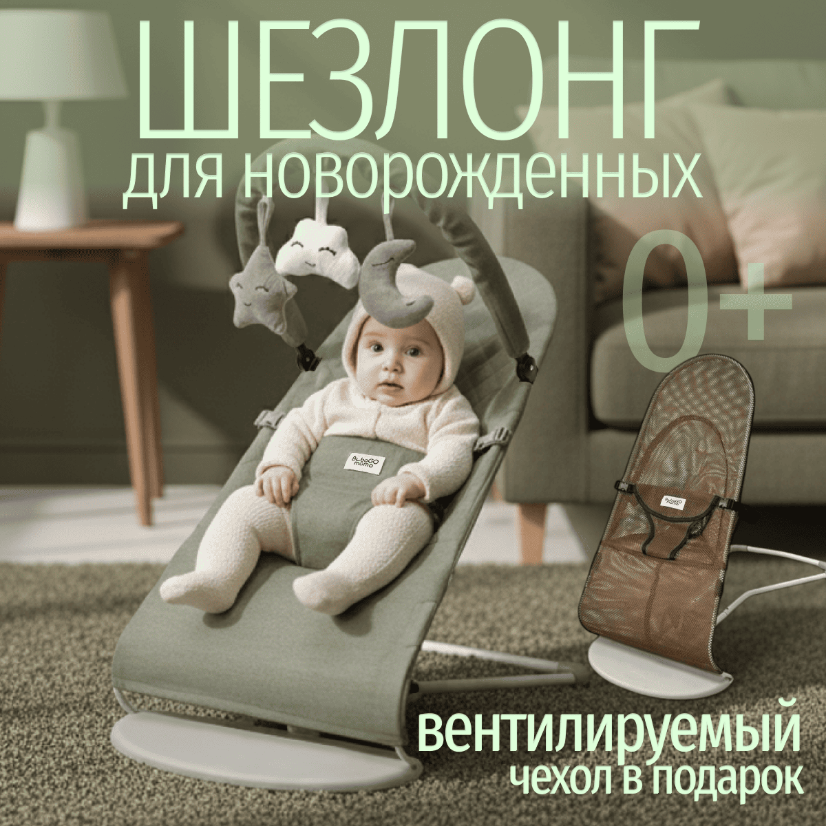BubaGO Momo – лёгкий шезлонг-качалка для малышей с рождения, который сочетает эргономичную посадку, мягкое укачивание и компактную складную конструкцию для дома и путешествий.