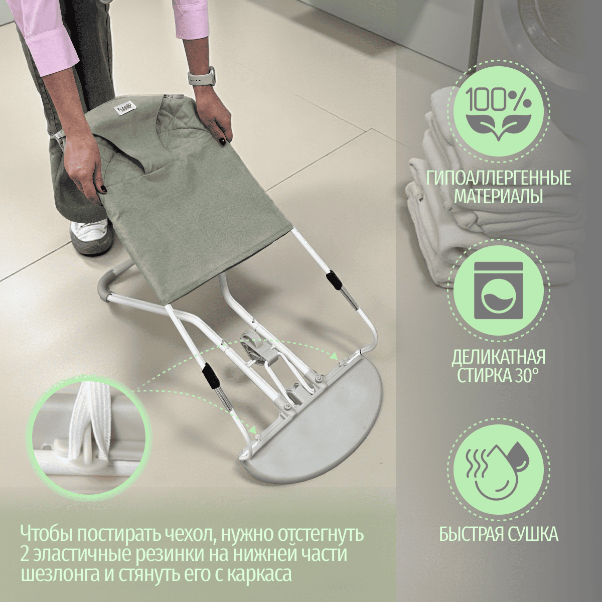 • Складная конструкция: шезлонг легко сложить для хранения или перевозки.