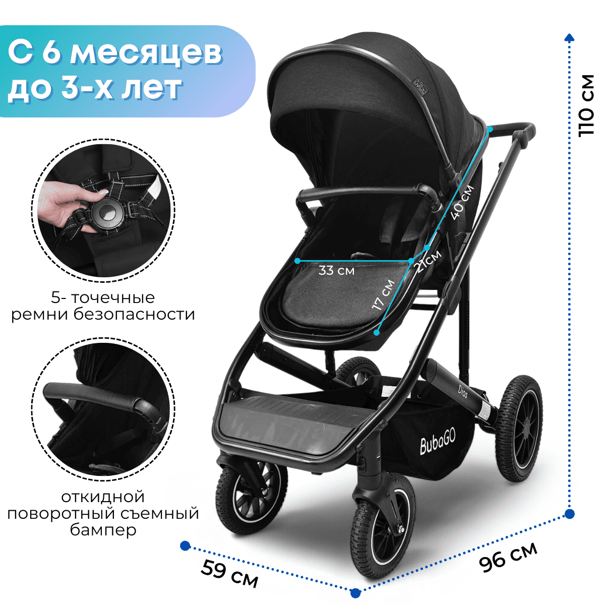 Коляска-трансформер BubaGO Dias 3 в 1 — универсальная система для детей с рождения до 3–4 лет, которая заменяет люльку, прогулочную коляску и автолюльку, экономя место и бюджет.