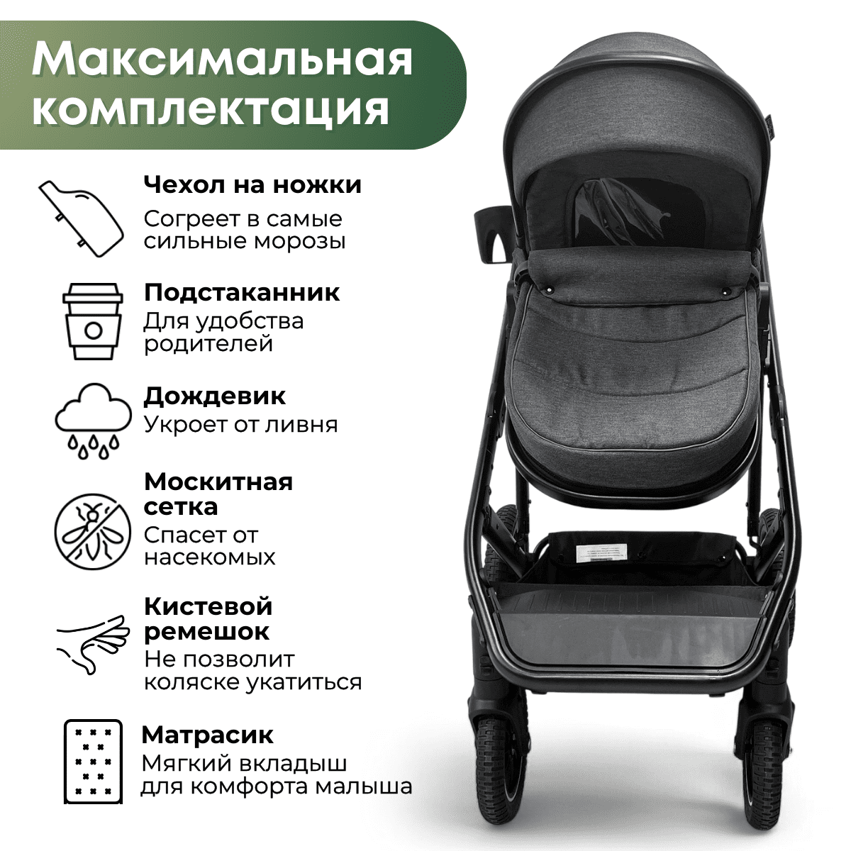 • Полная комплектация для прогулок в любую погоду, от дождя до яркого солнца.