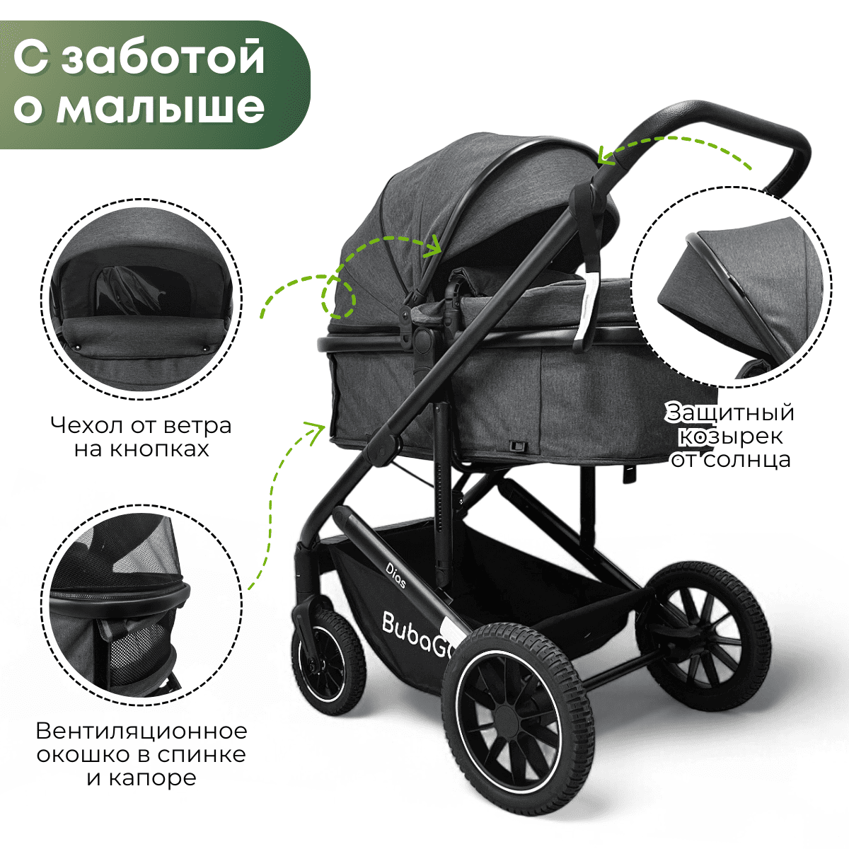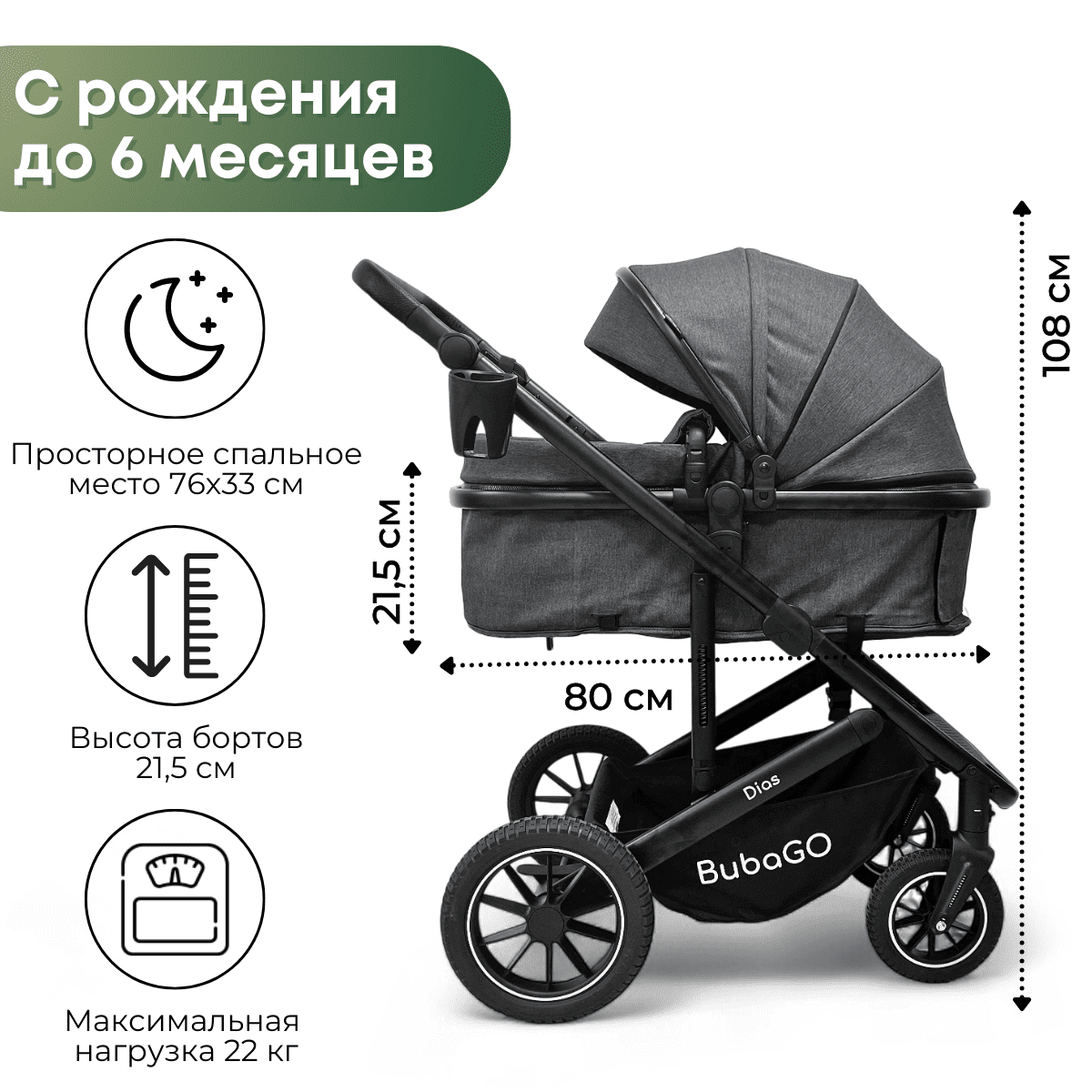 Коляска-трансформер BubaGO Dias 3 в 1 — универсальная система для детей с рождения до 3–4 лет, которая заменяет люльку, прогулочную коляску и автолюльку, экономя место и бюджет.
