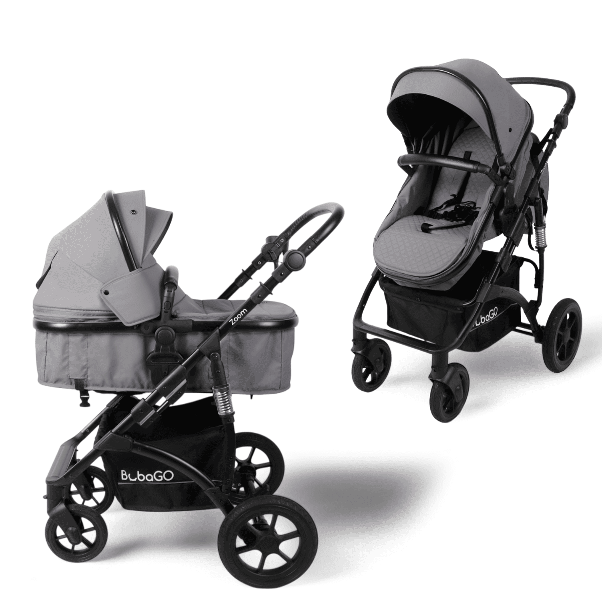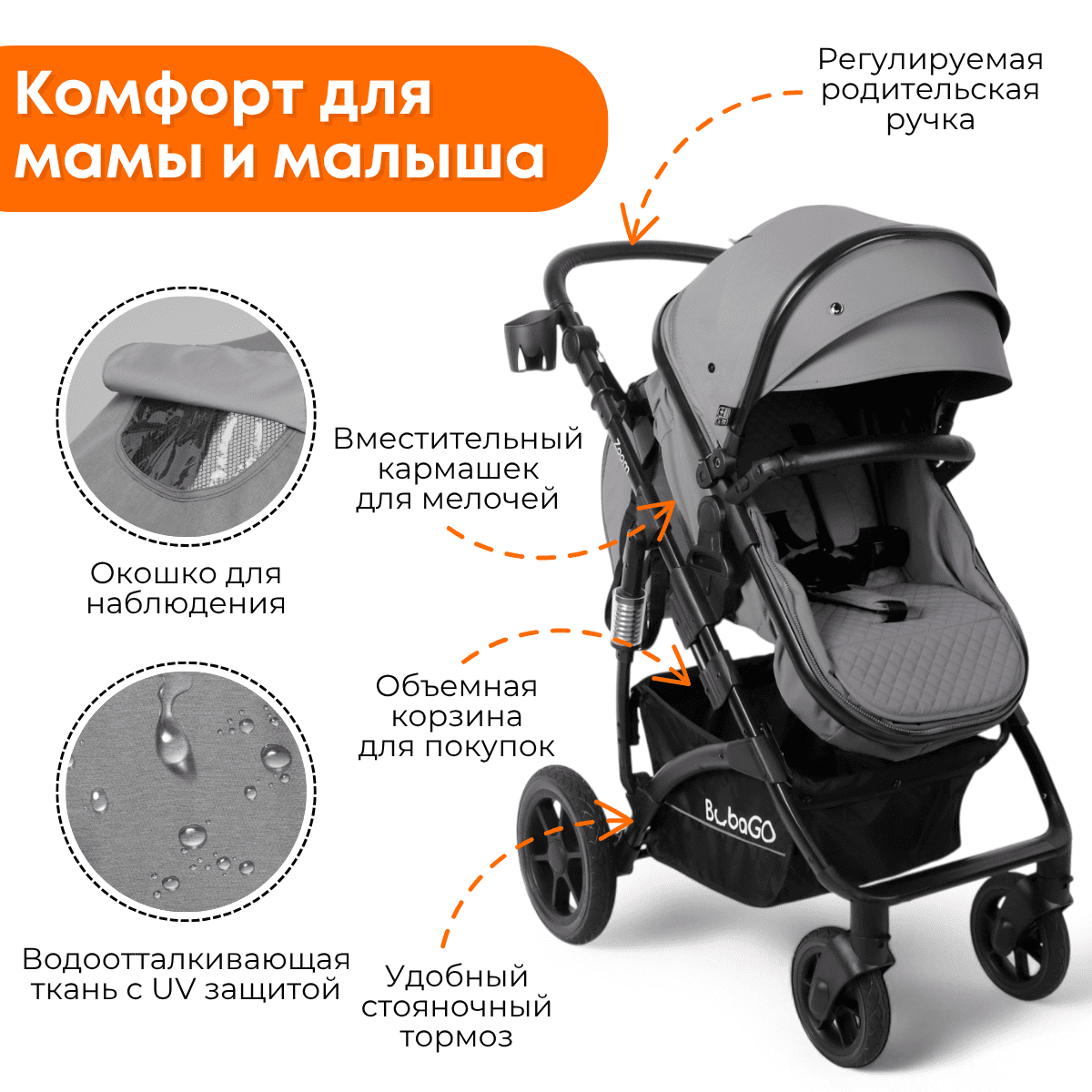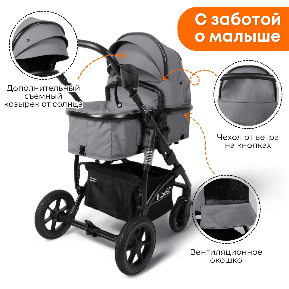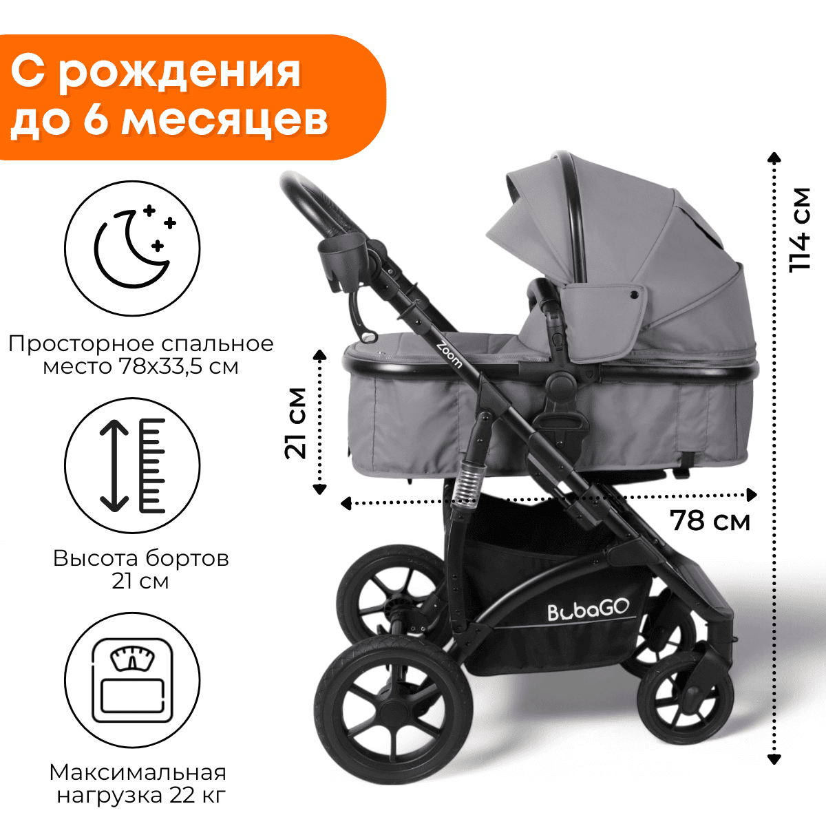 Коляска-трансформер BubaGO Zoom 3 в 1 — универсальная модель с люлькой, прогулочным блоком и автолюлькой, рассчитанная на детей с рождения до 22 кг и ежедневного использования в городе круглый год.
