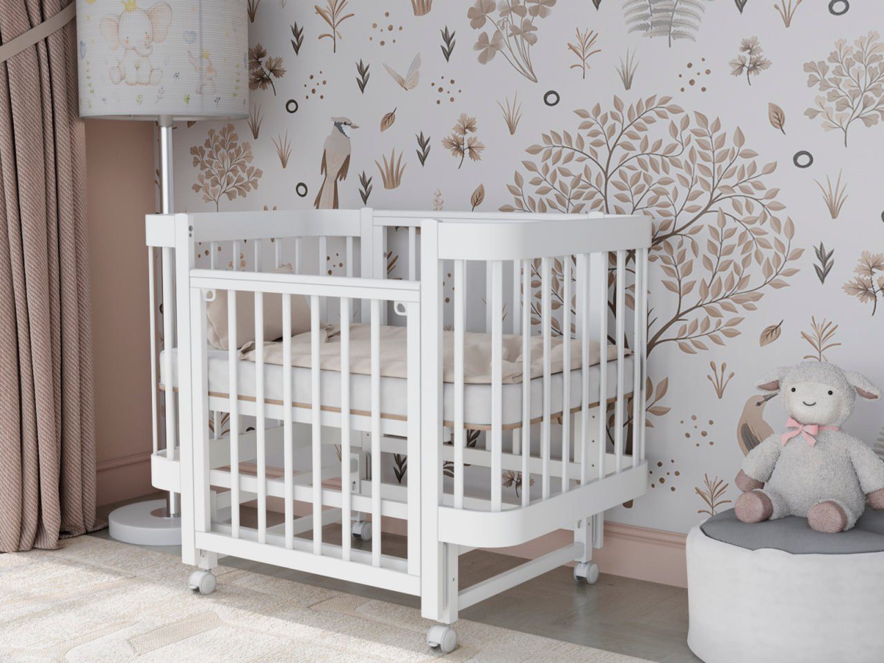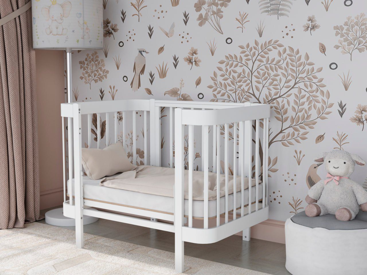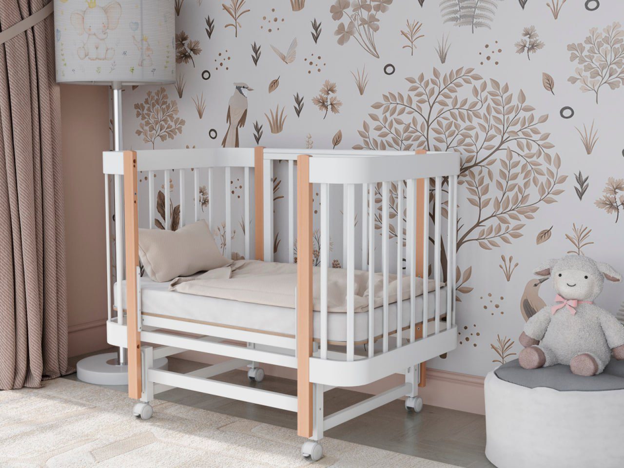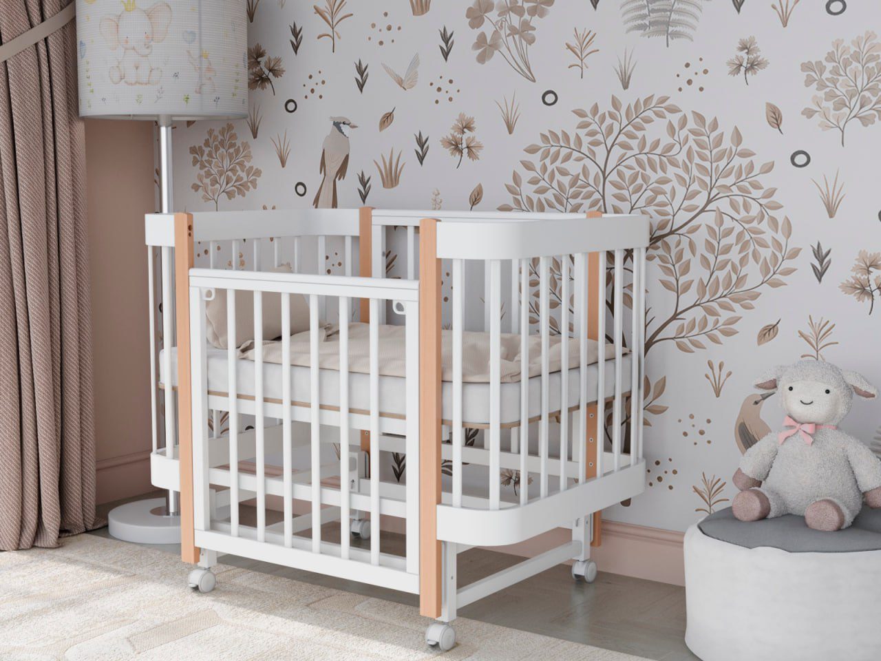 — 4 уровня регулировки высоты ложа — комфортно для разных этапов роста ребёнка и подстройки под высоту взрослой кровати.