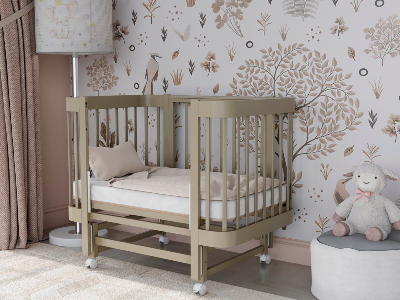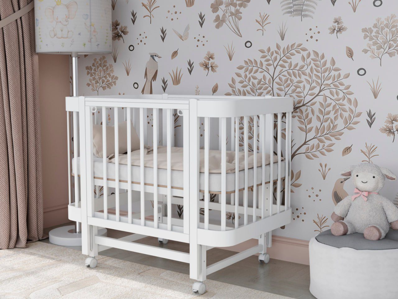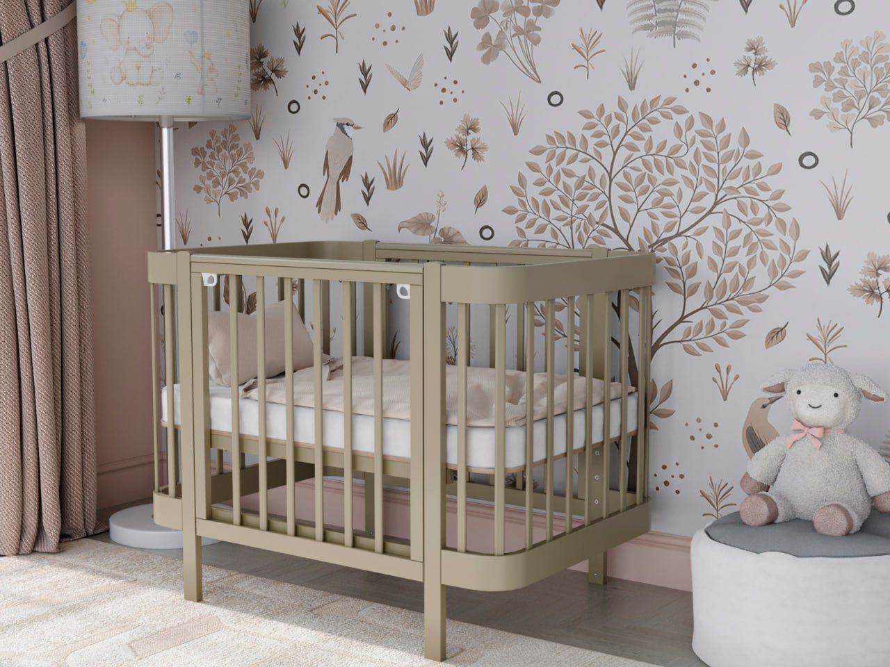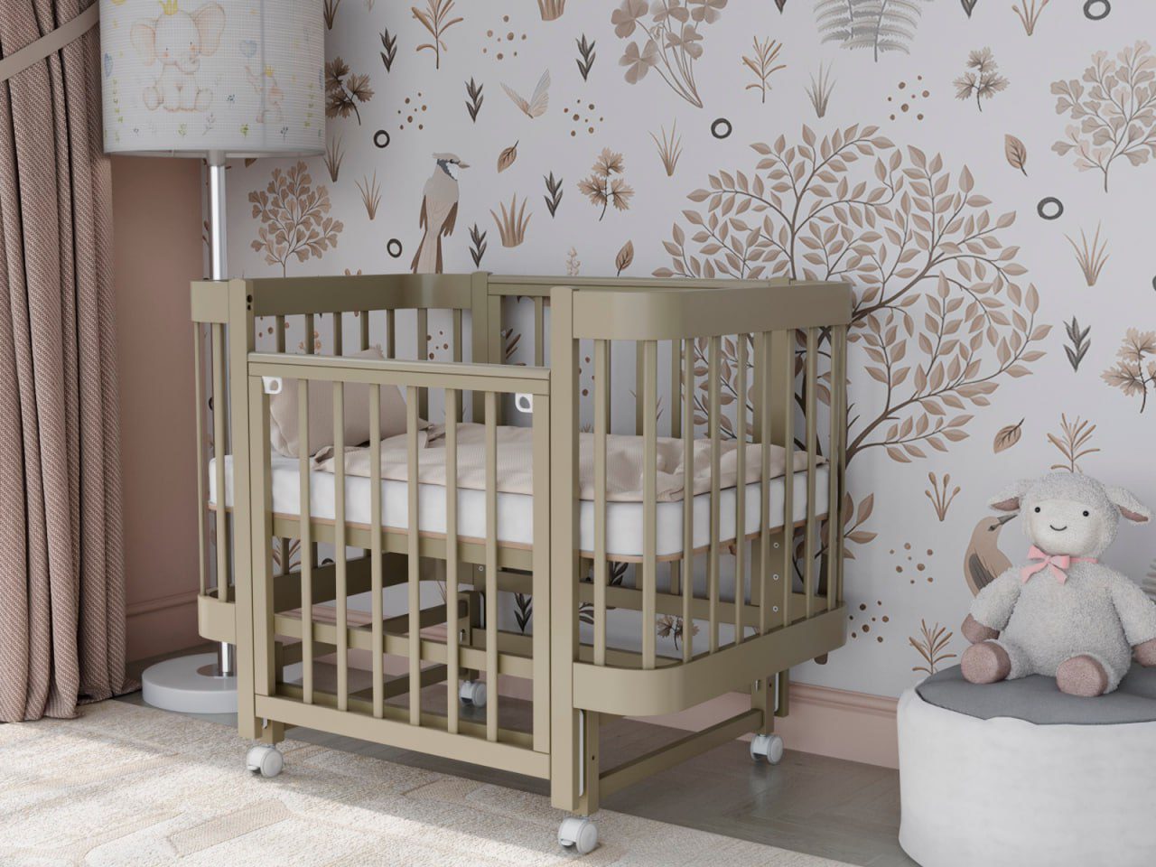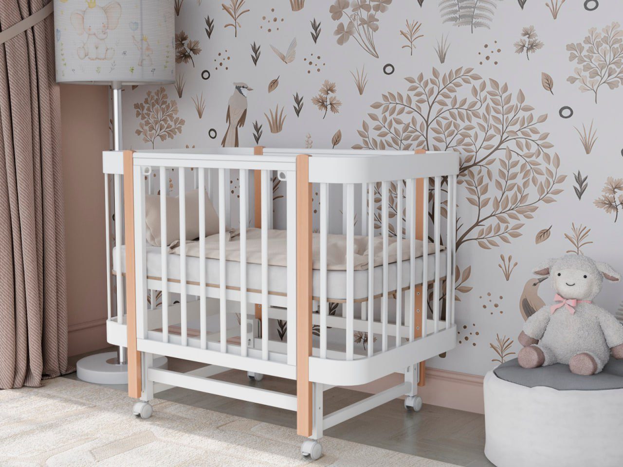 — 4 уровня регулировки высоты ложа — комфортно для разных этапов роста ребёнка и подстройки под высоту взрослой кровати.