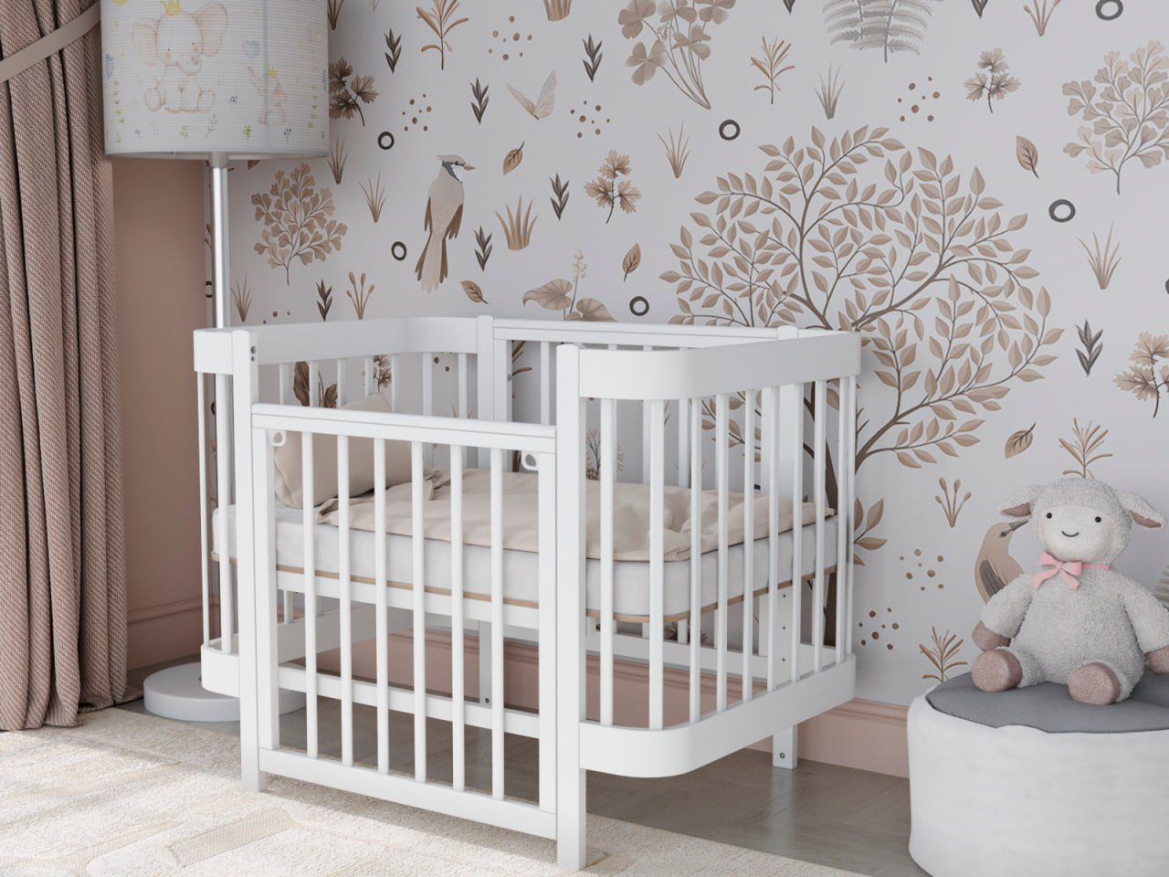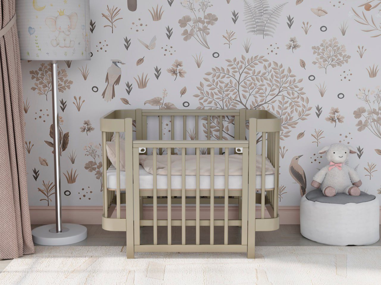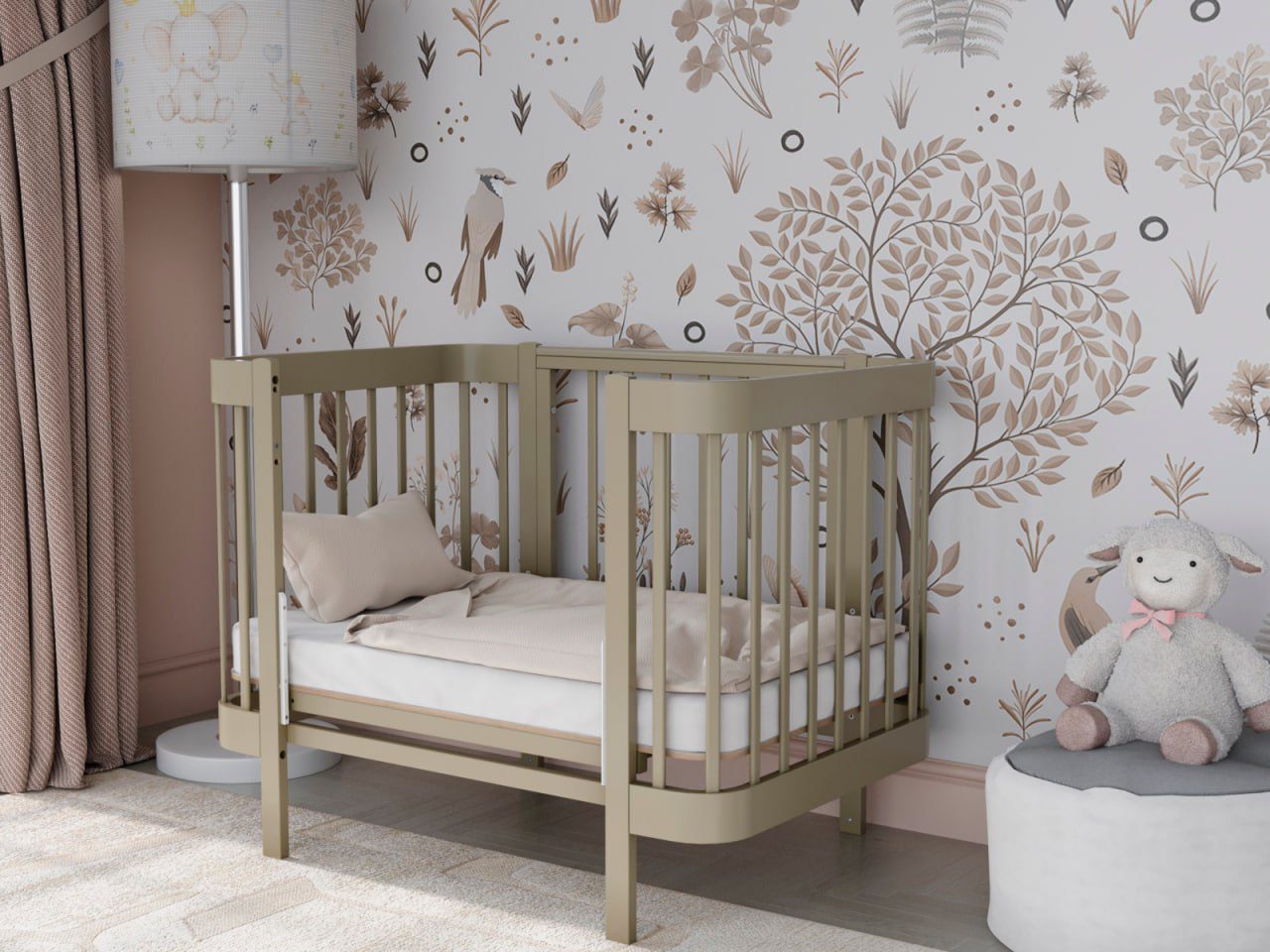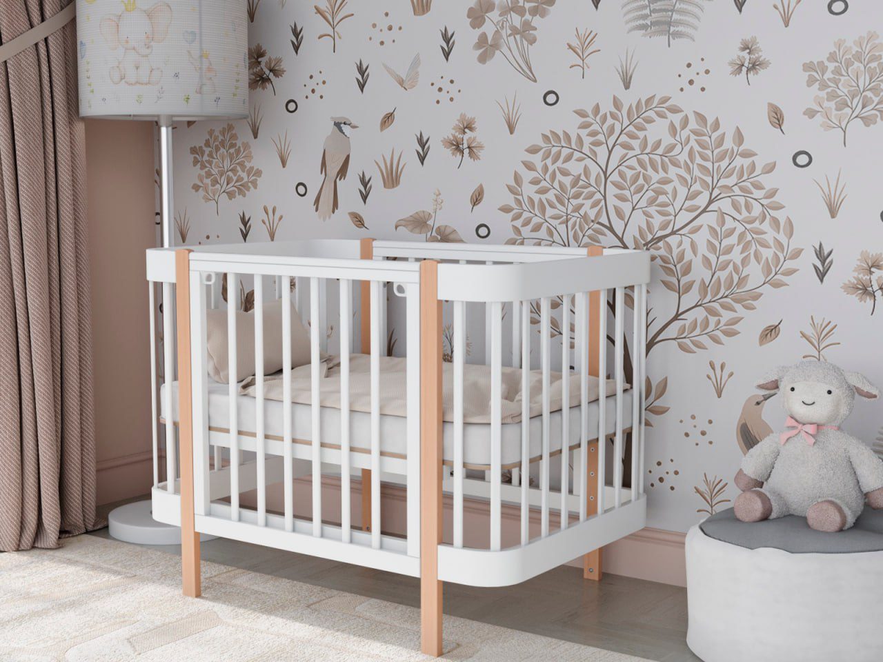 — 4 уровня регулировки высоты ложа — комфортно для разных этапов роста ребёнка и подстройки под высоту взрослой кровати.
