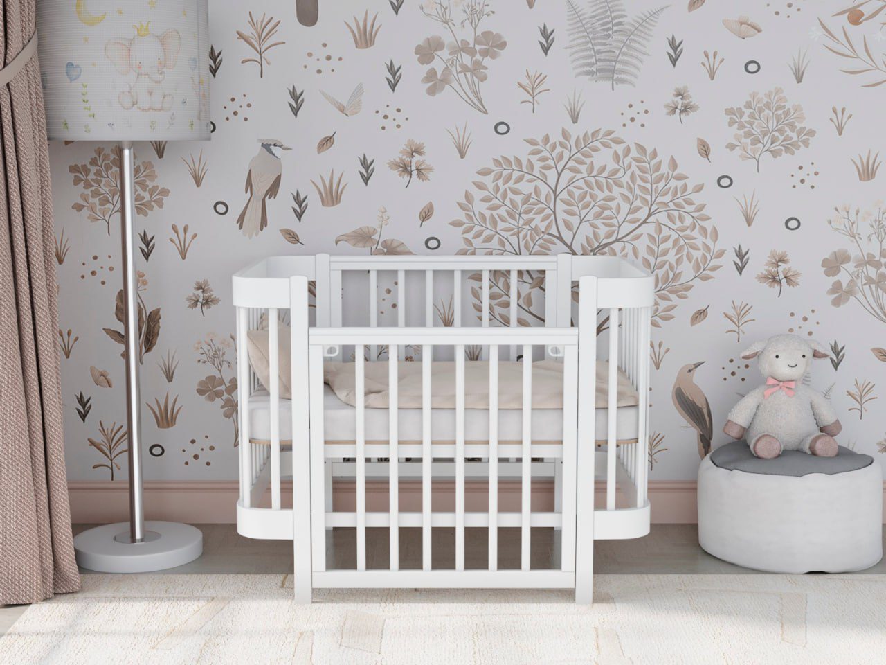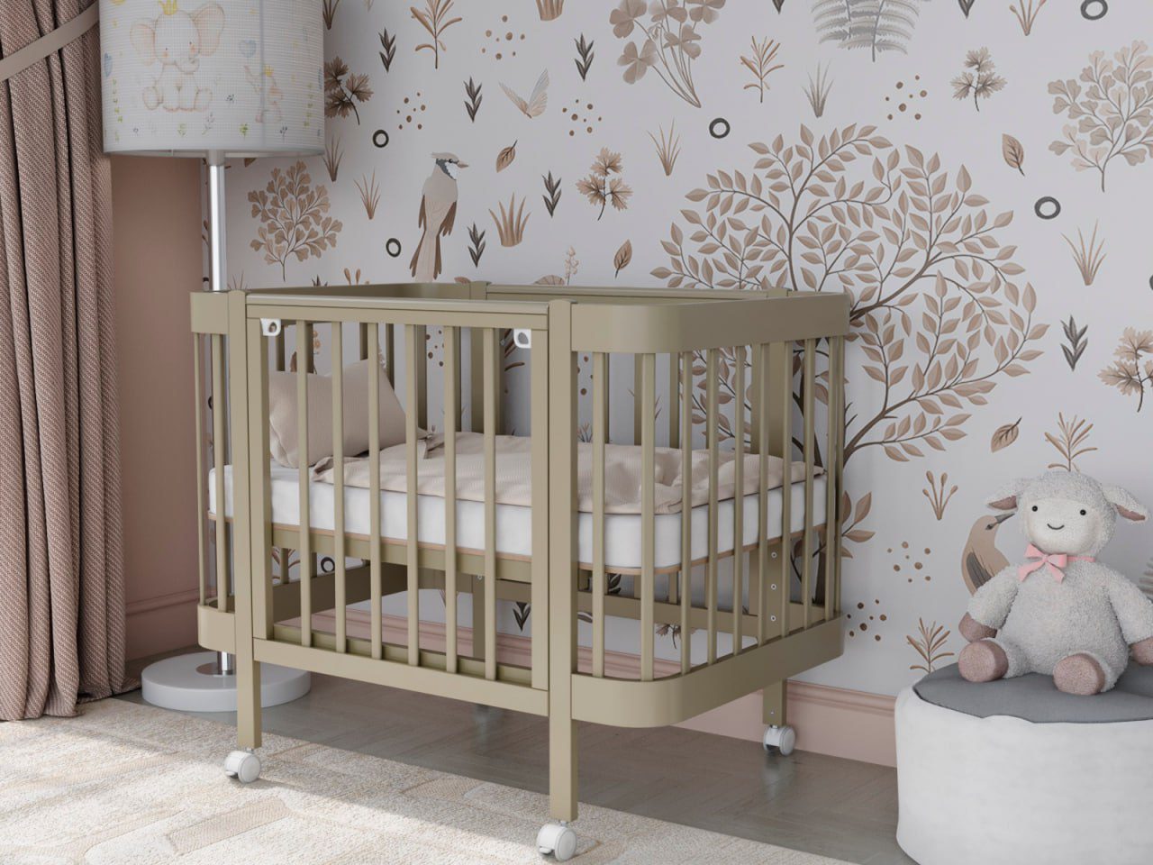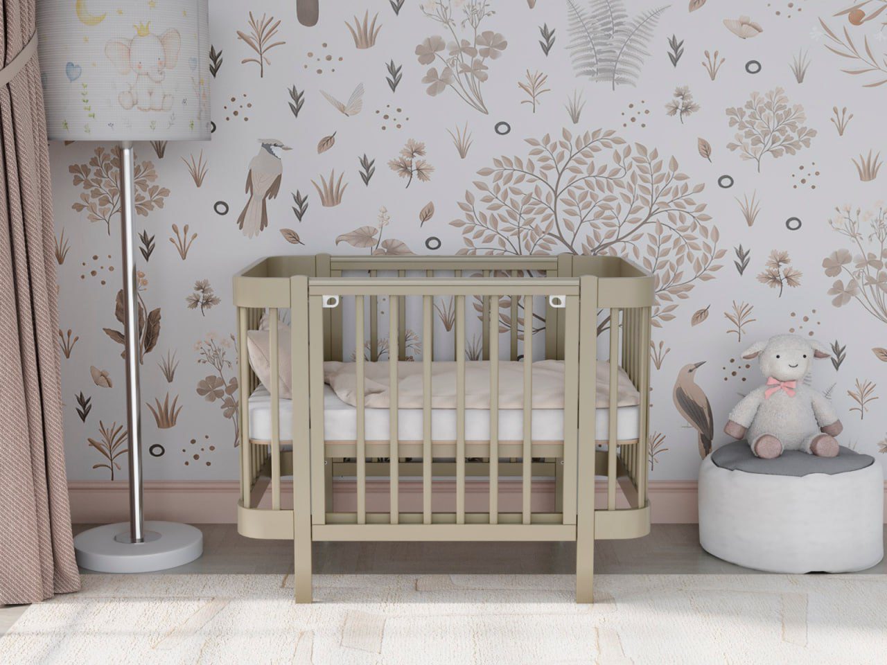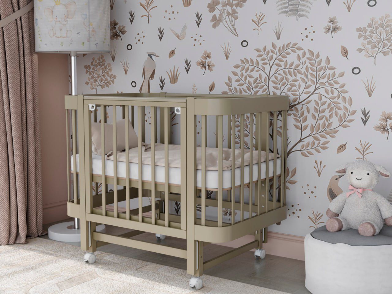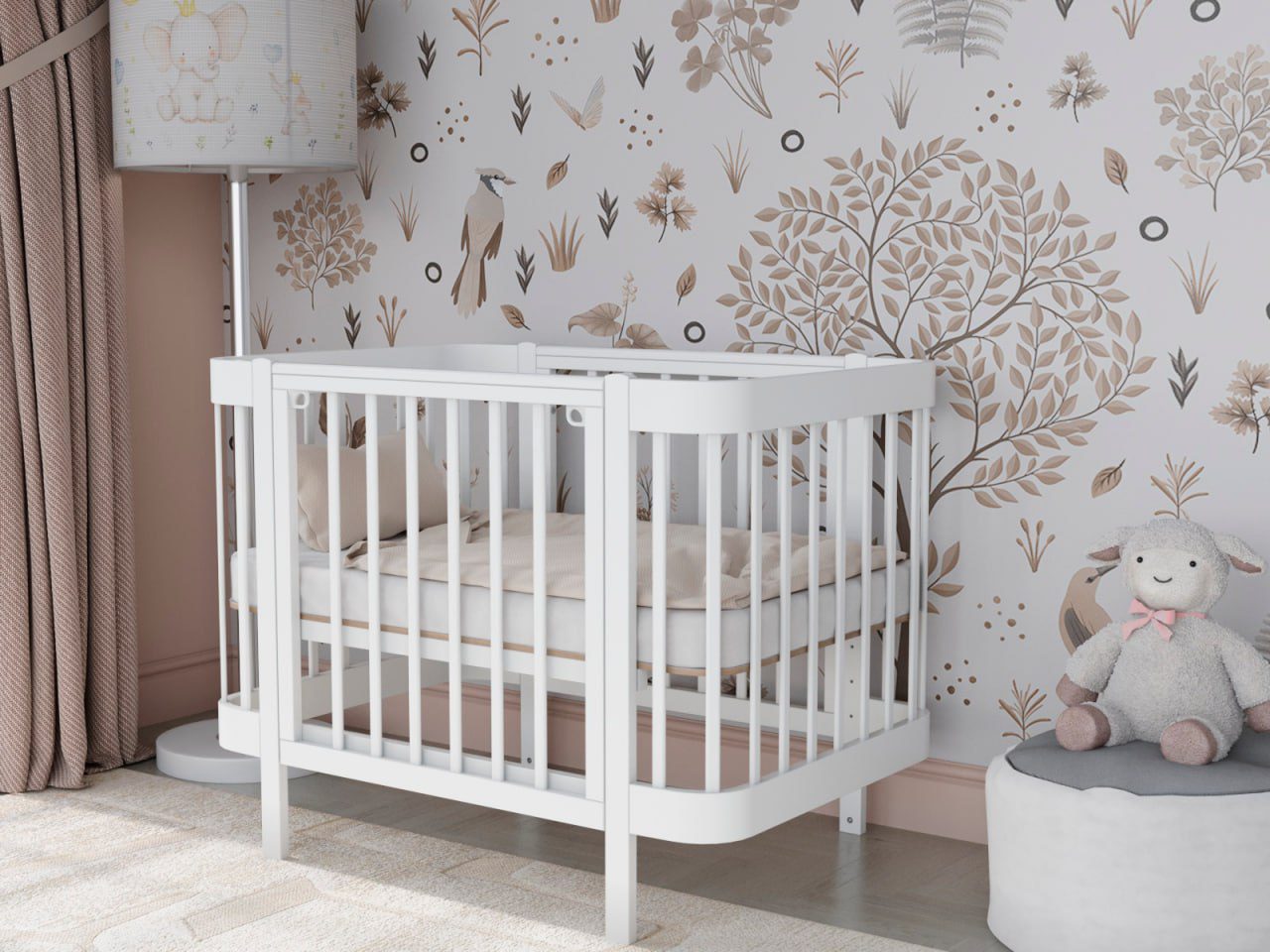 — 4 уровня регулировки высоты ложа — комфортно для разных этапов роста ребёнка и подстройки под высоту взрослой кровати.