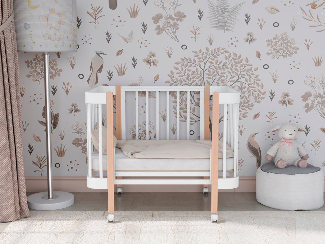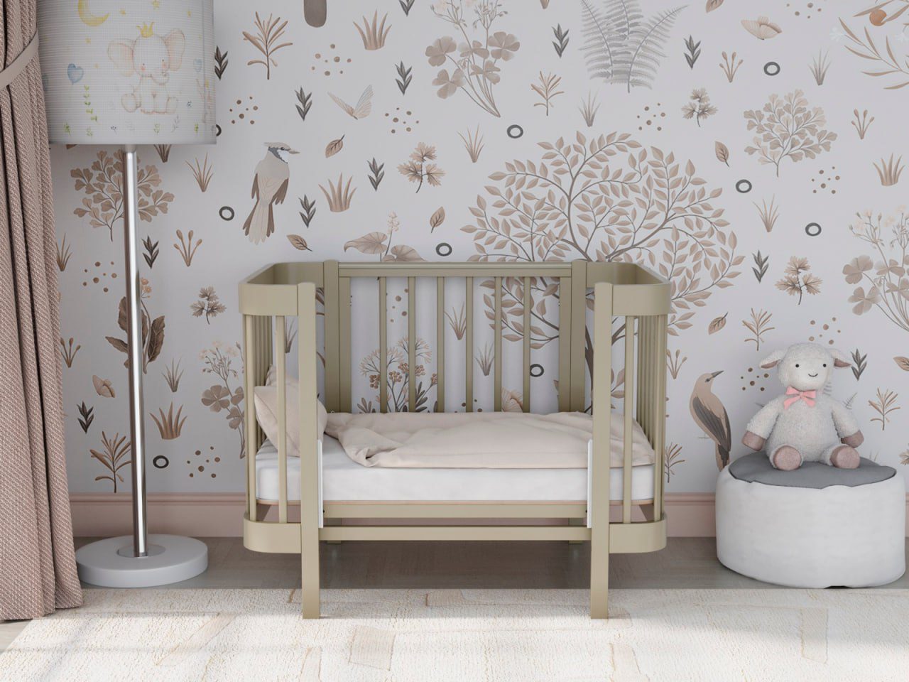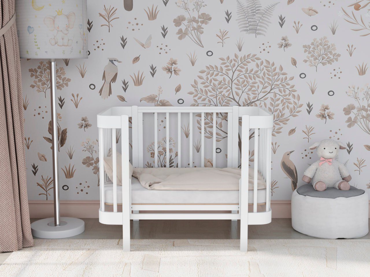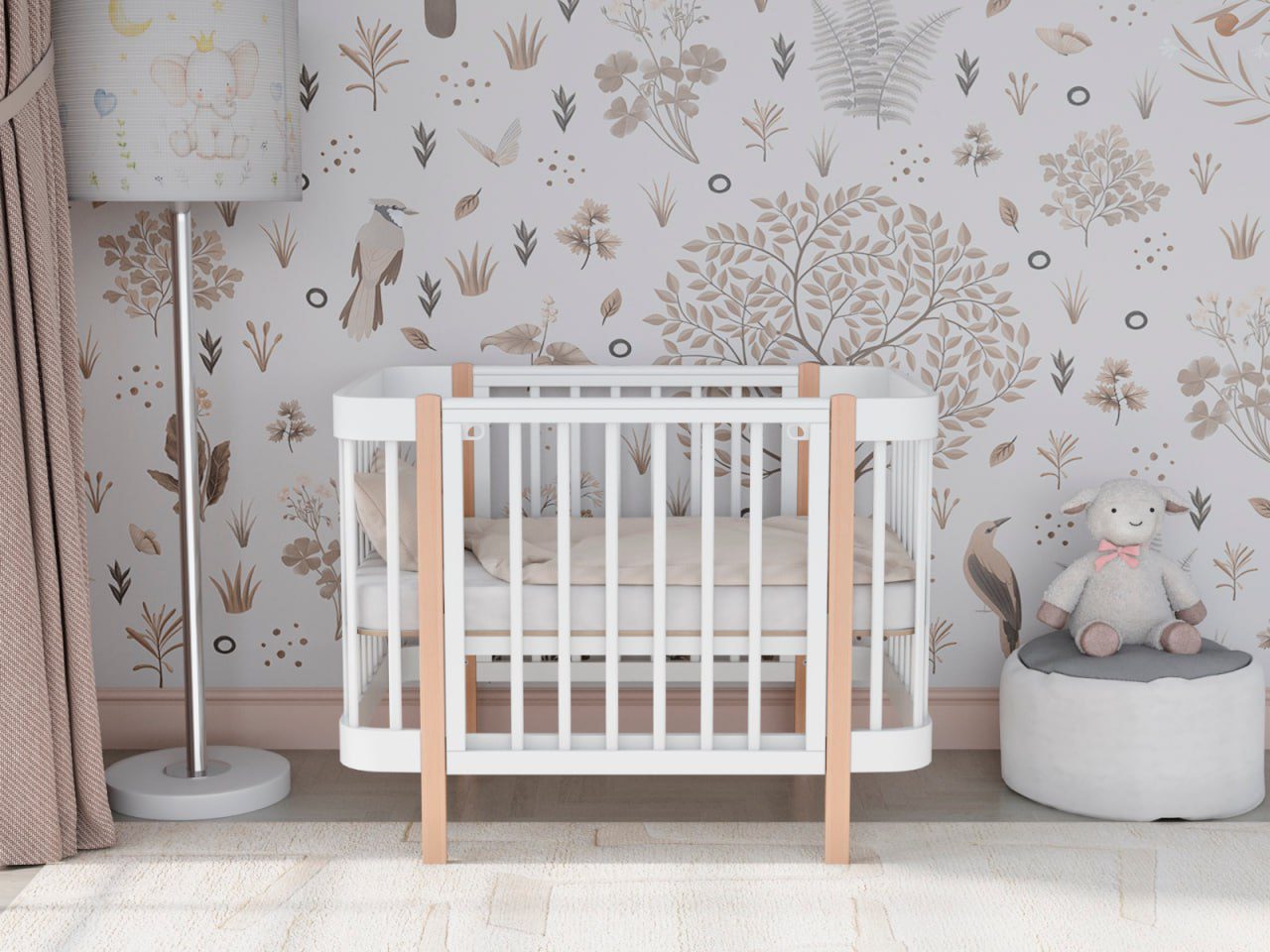 — 4 уровня регулировки высоты ложа — комфортно для разных этапов роста ребёнка и подстройки под высоту взрослой кровати.