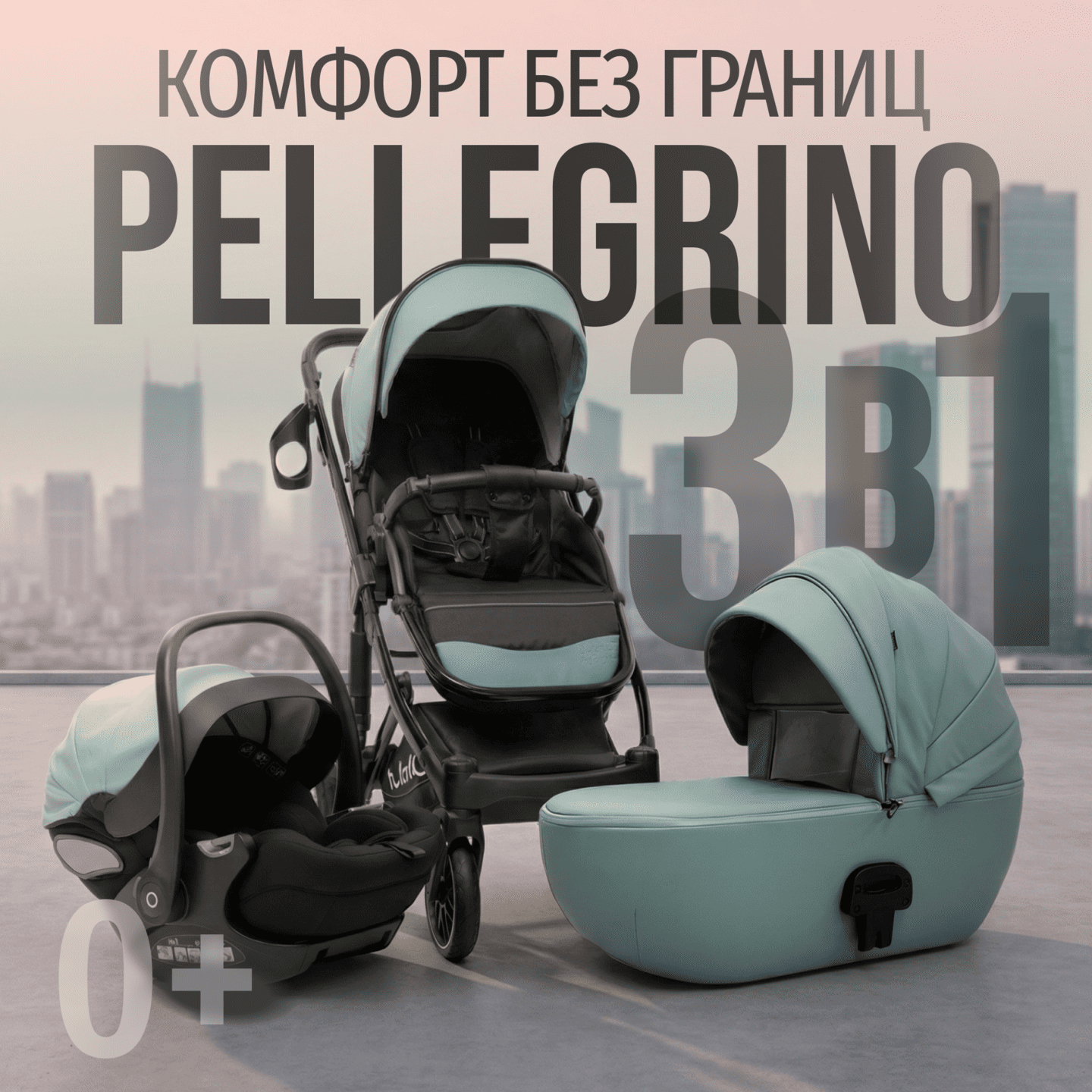 • Универсальная коляска 3-в-1: люлька, прогулочный блок, автолюлька 0+.