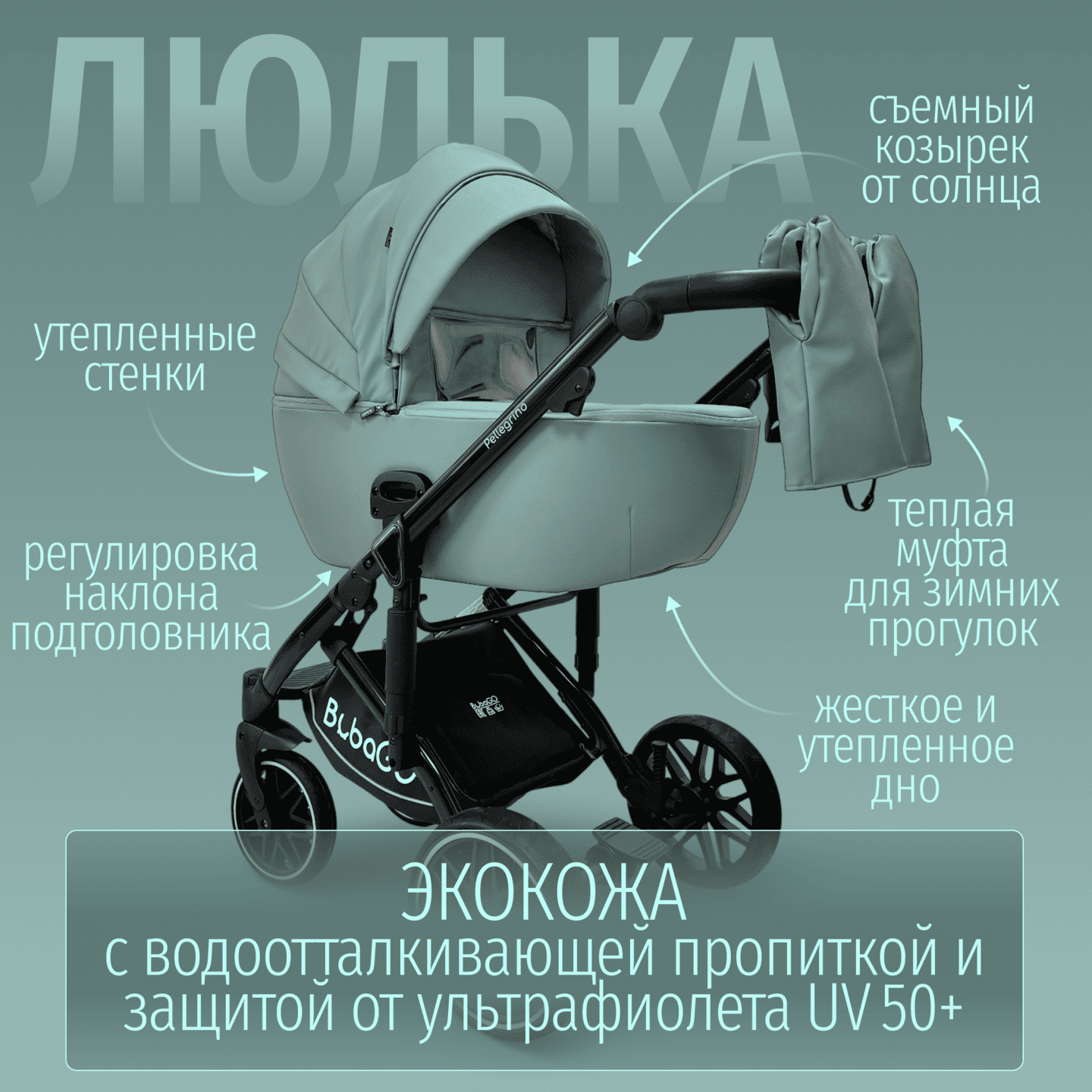 • Люлька полностью из износостойкой экокожи, сохраняет стильный вид и легко моется.