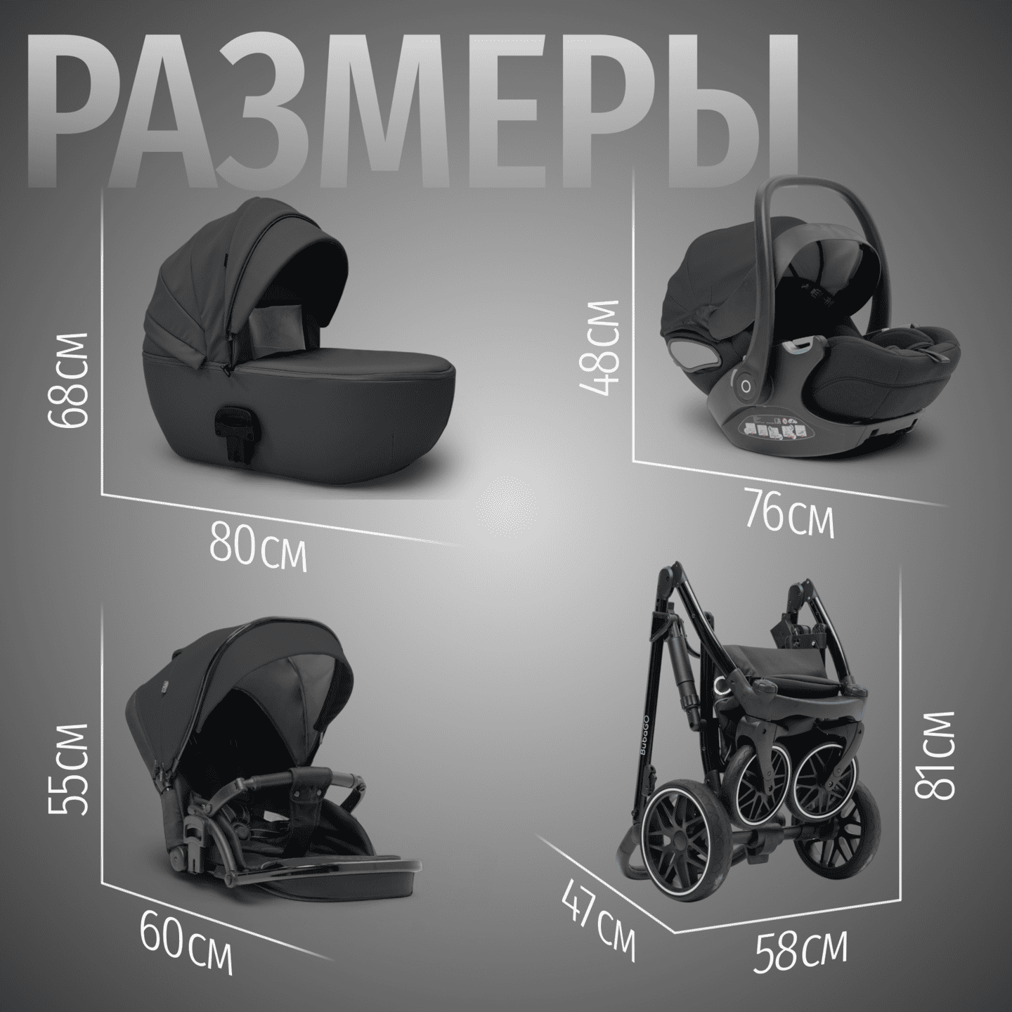Универсальная коляска 3-в-1: люлька, прогулочный блок, автолюлька 0+.