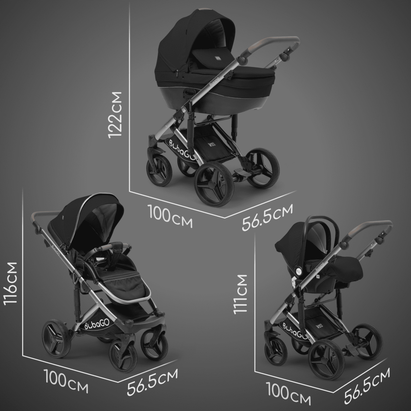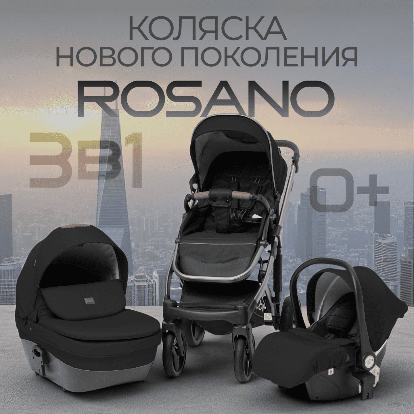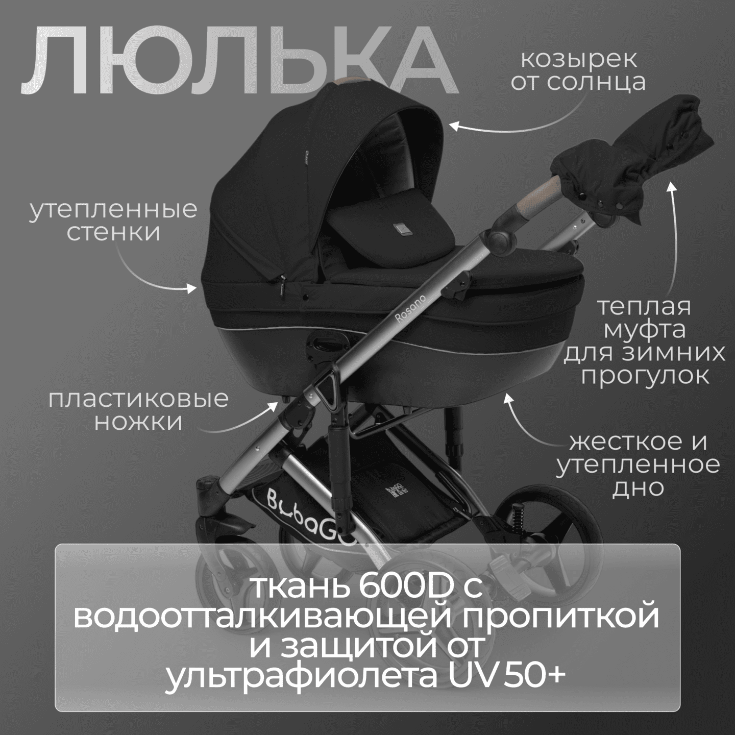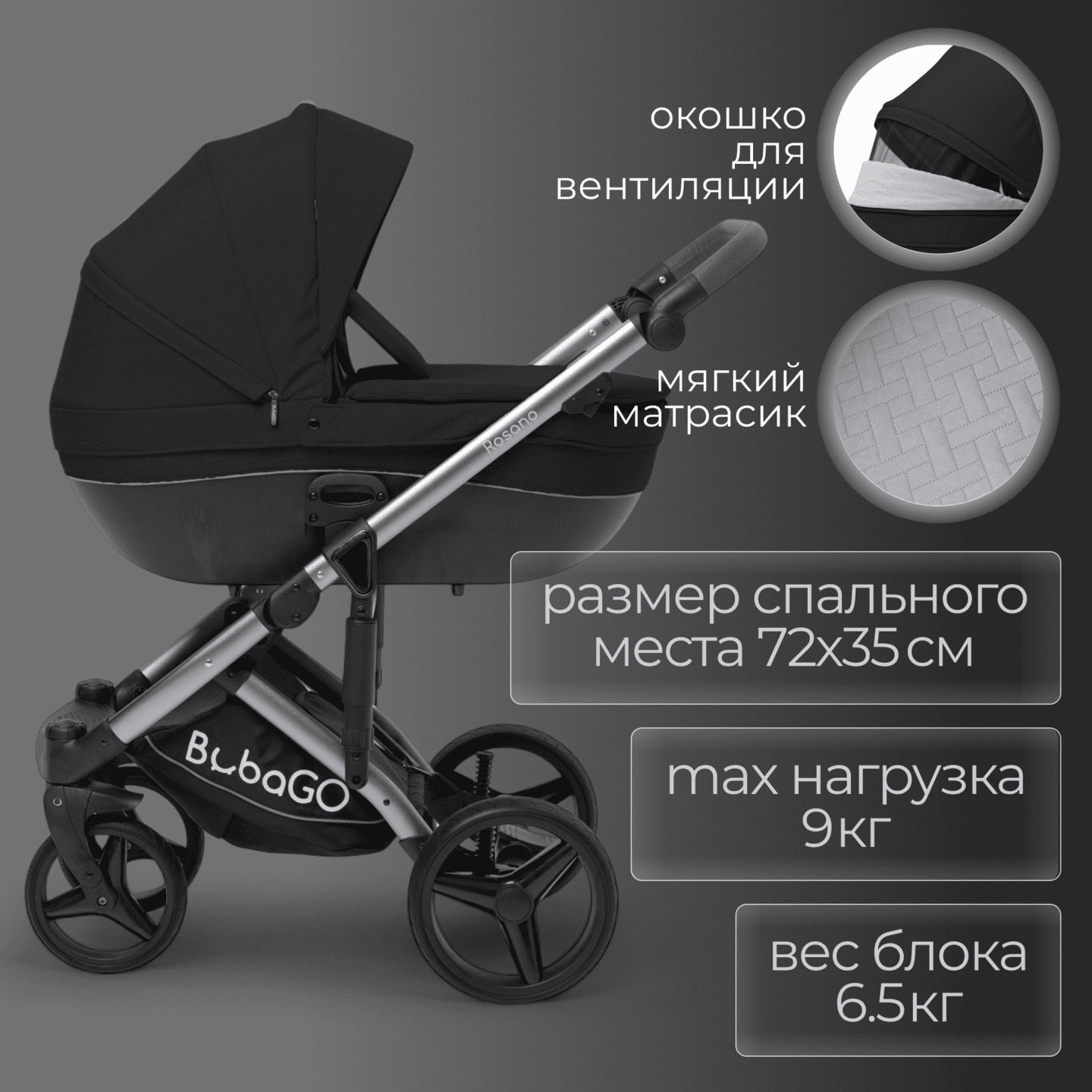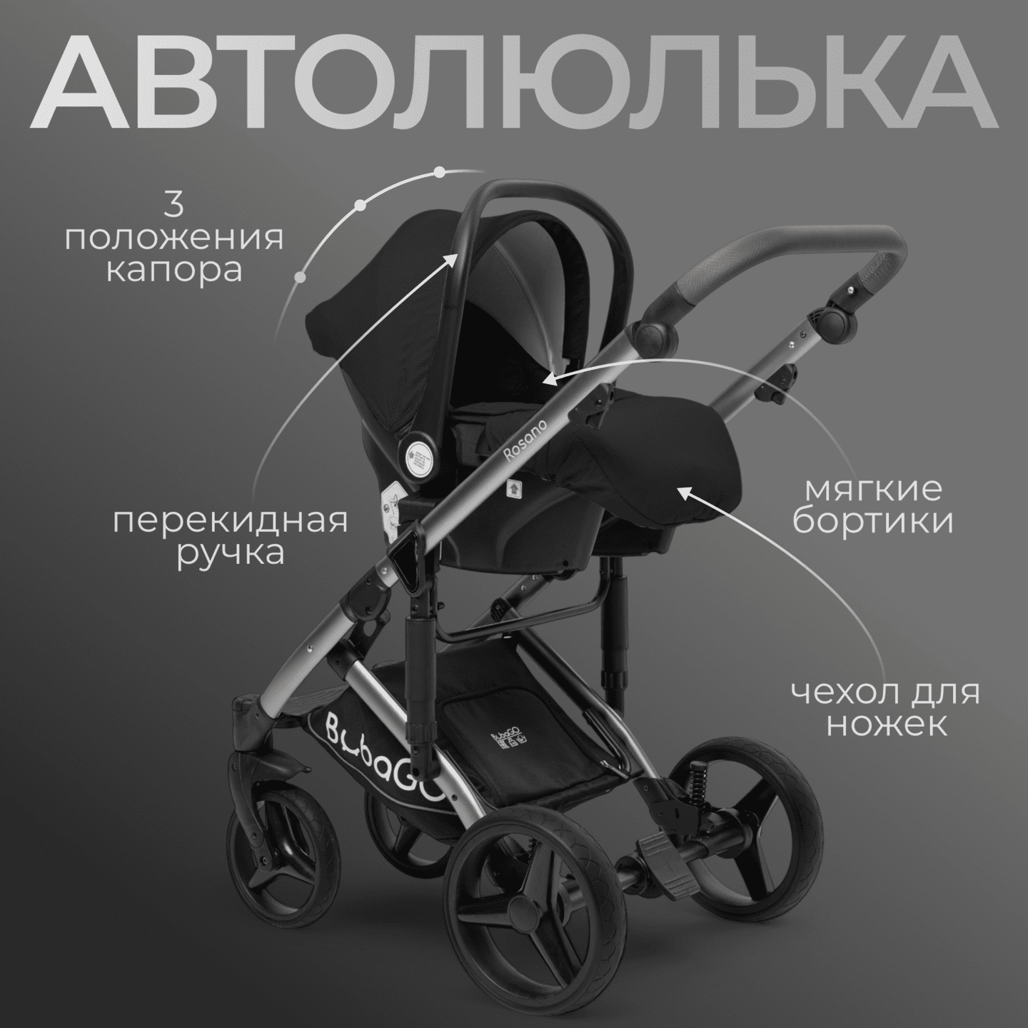 Модульная коляска BubaGO Rosano 3 в 1 (черный)