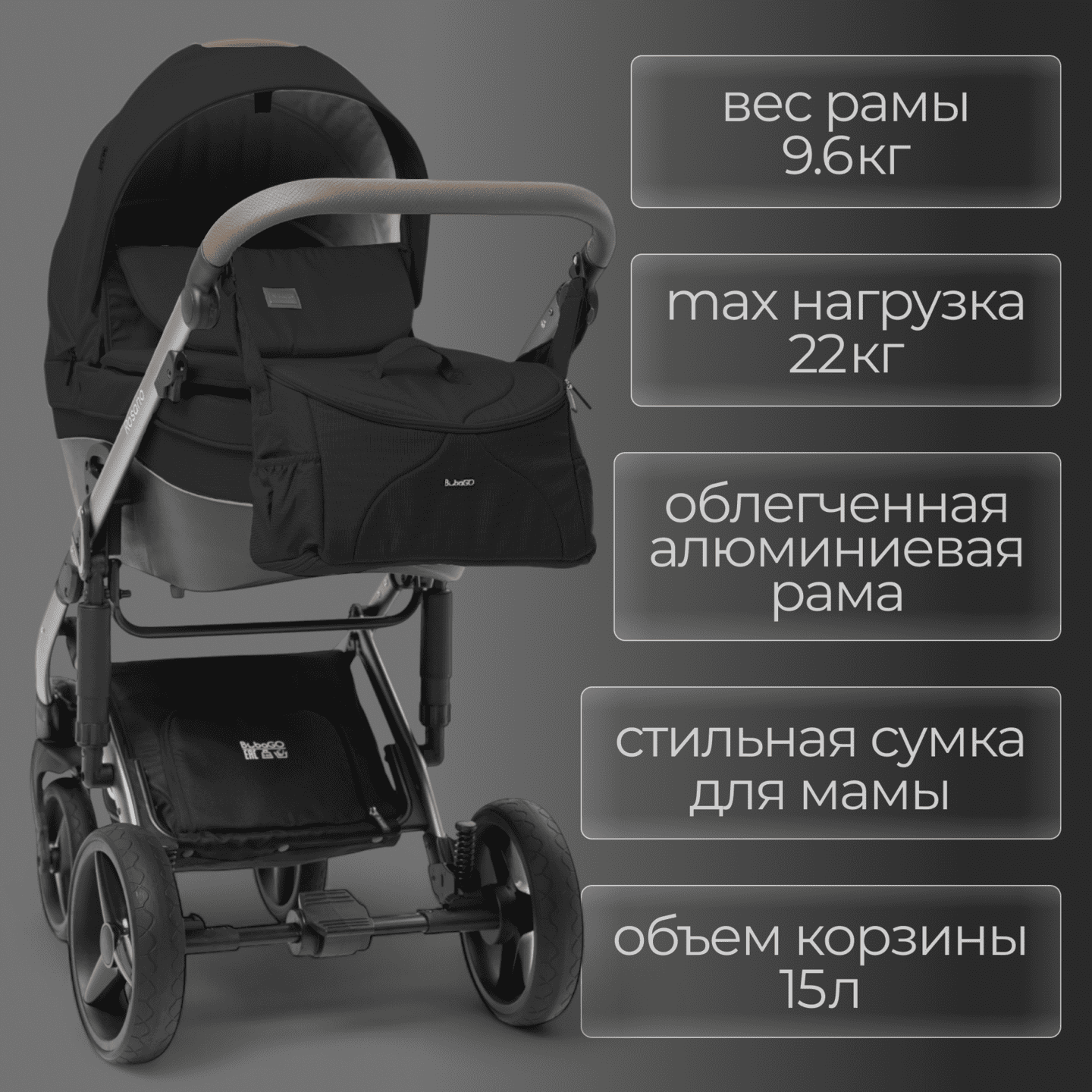 • В комплект входит стильная сумка, выдержанная в едином дизайне с коляской.