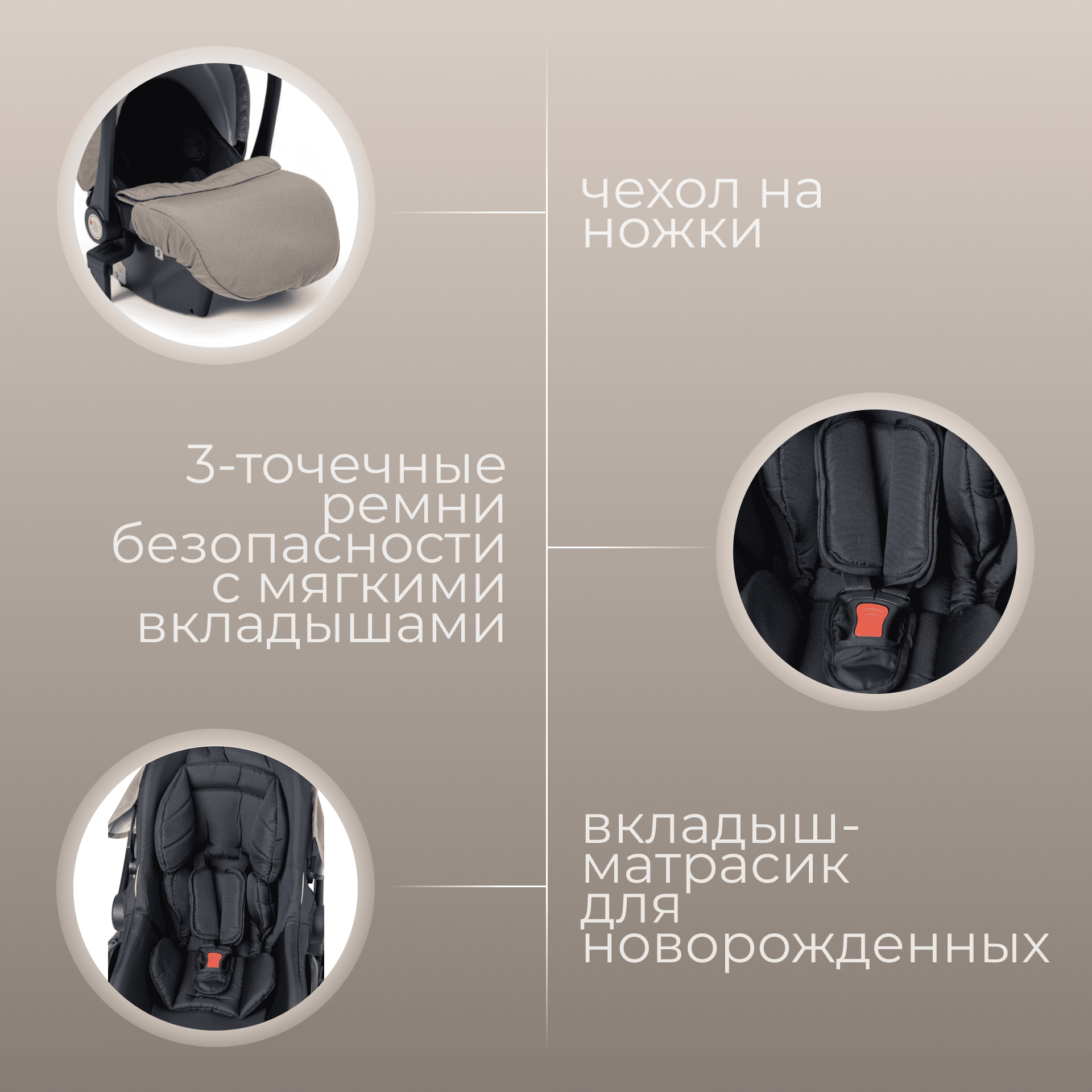 Соответствие стандарту безопасности ECE R44/04, энергопоглощающий корпус, анатомические вкладыши для новорождённых.