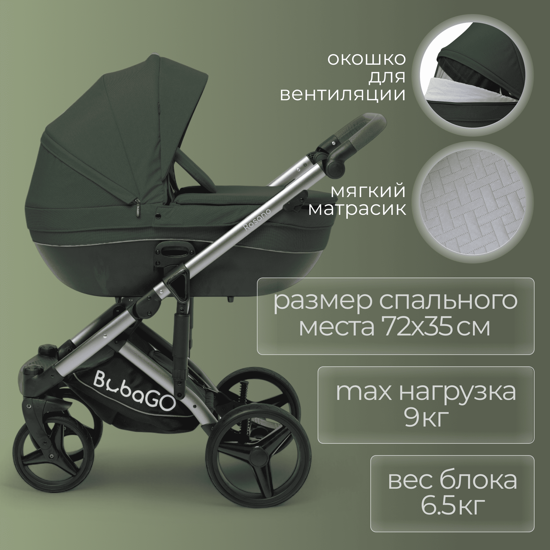 Отличная проходимость, лёгкость управления и стильный внешний вид делают BubaGo Rosano практичным и при этом премиальным решением для требовательных родителей.
