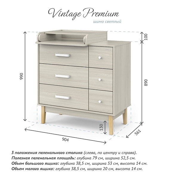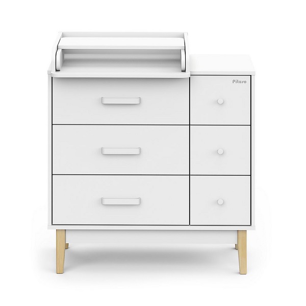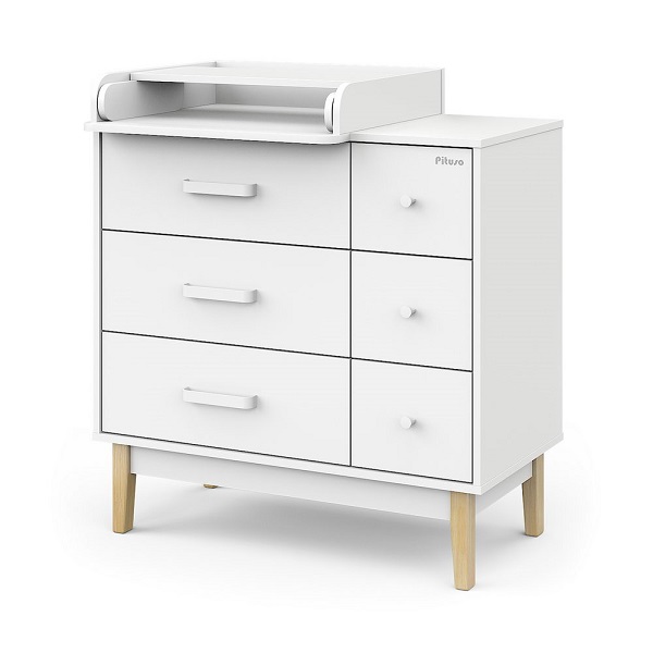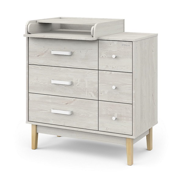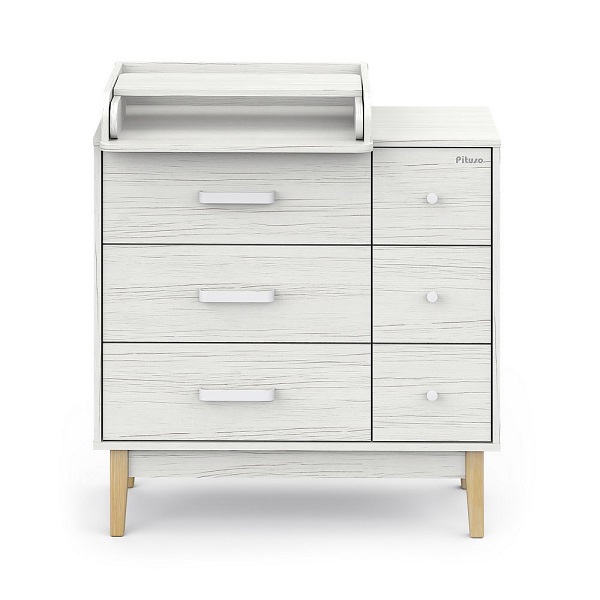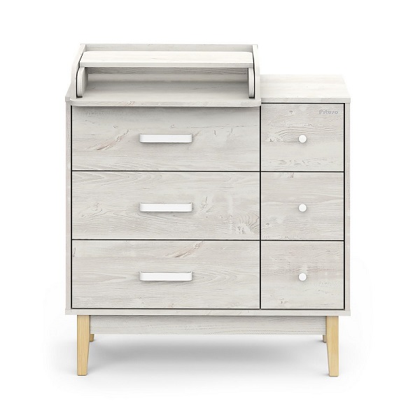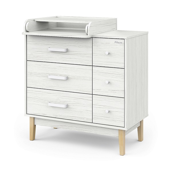 Пеленальный комод Pituso Kids Vintage Premium — дизайнерский комод на деревянных ножках с лёгкосъёмным раскладным пеленальным столиком, который сочетает стиль и функциональность для современной детской.