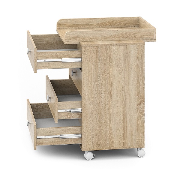 Пеленальный комод Rolf — компактный и стильный комод шириной 70 см, созданный с учётом удобства мамы и малыша и продуманным дизайном для долгих лет эксплуатации.