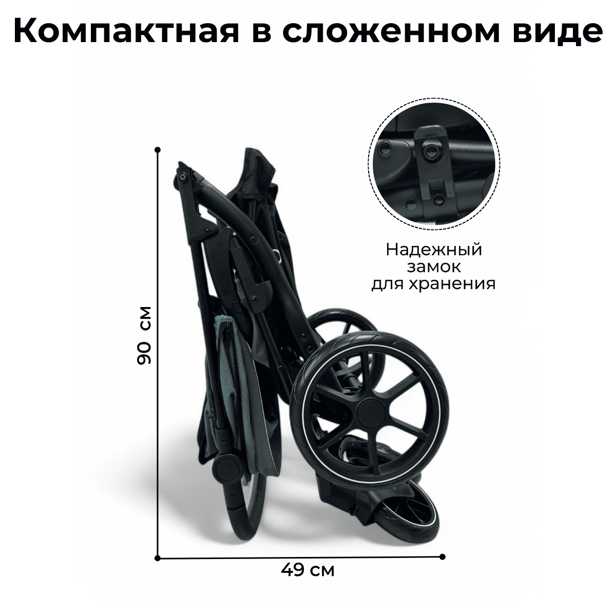 • Большие EVA‑колёса с амортизацией на всех четырёх колёсах обеспечивают мягкий ход по плитке, гравию и лёгкому бездорожью.