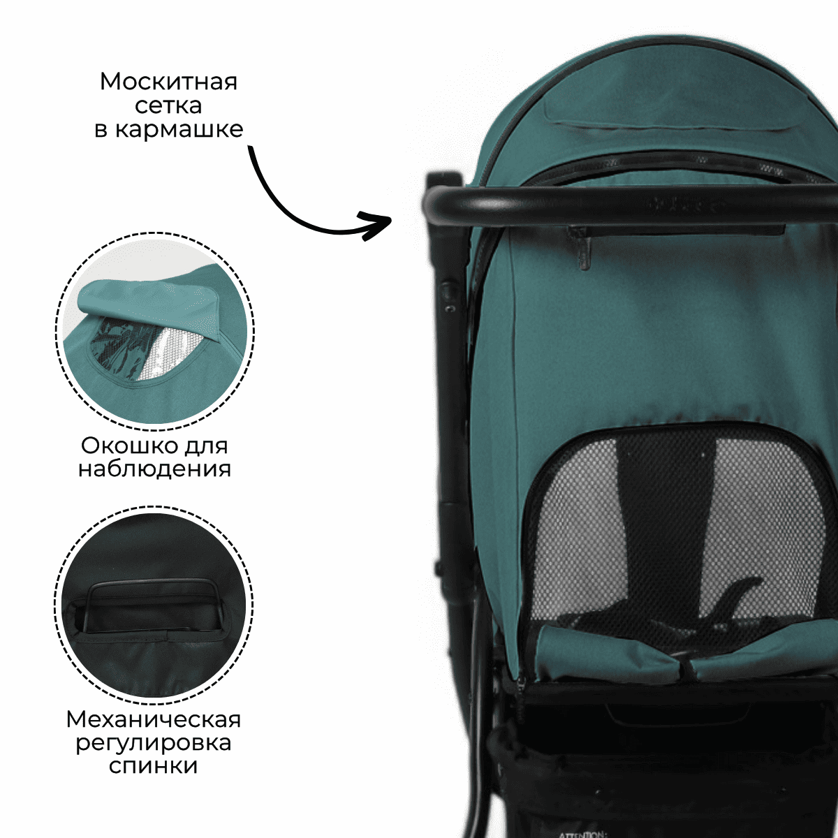 • Просторное спальное место и ровное горизонтальное положение спинки подходят для длительных прогулок и сна малыша.