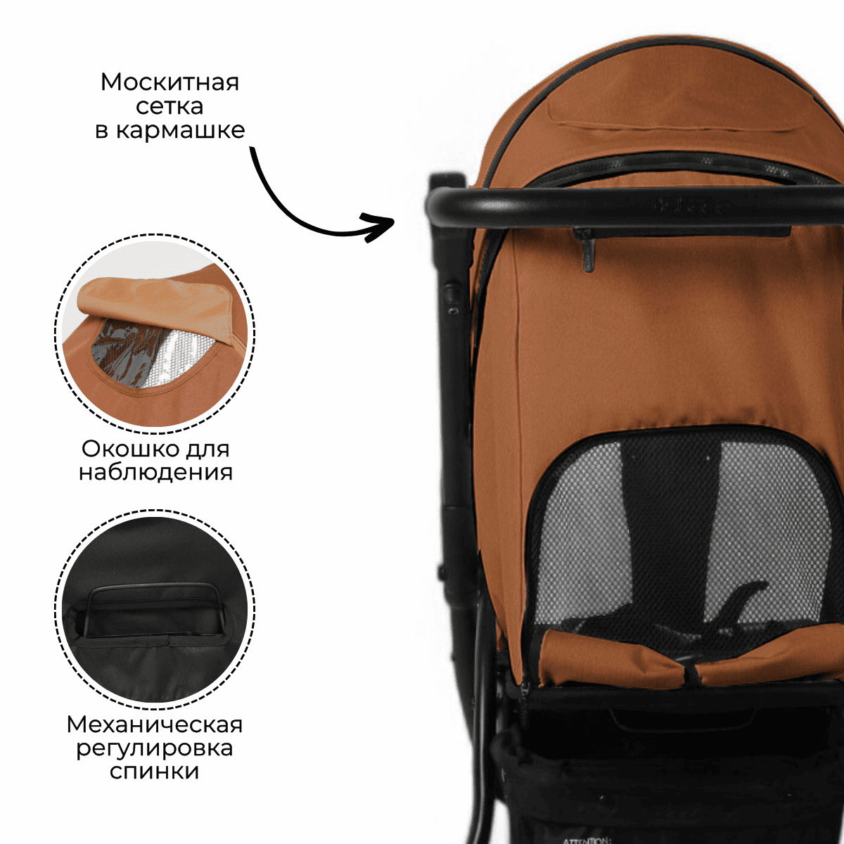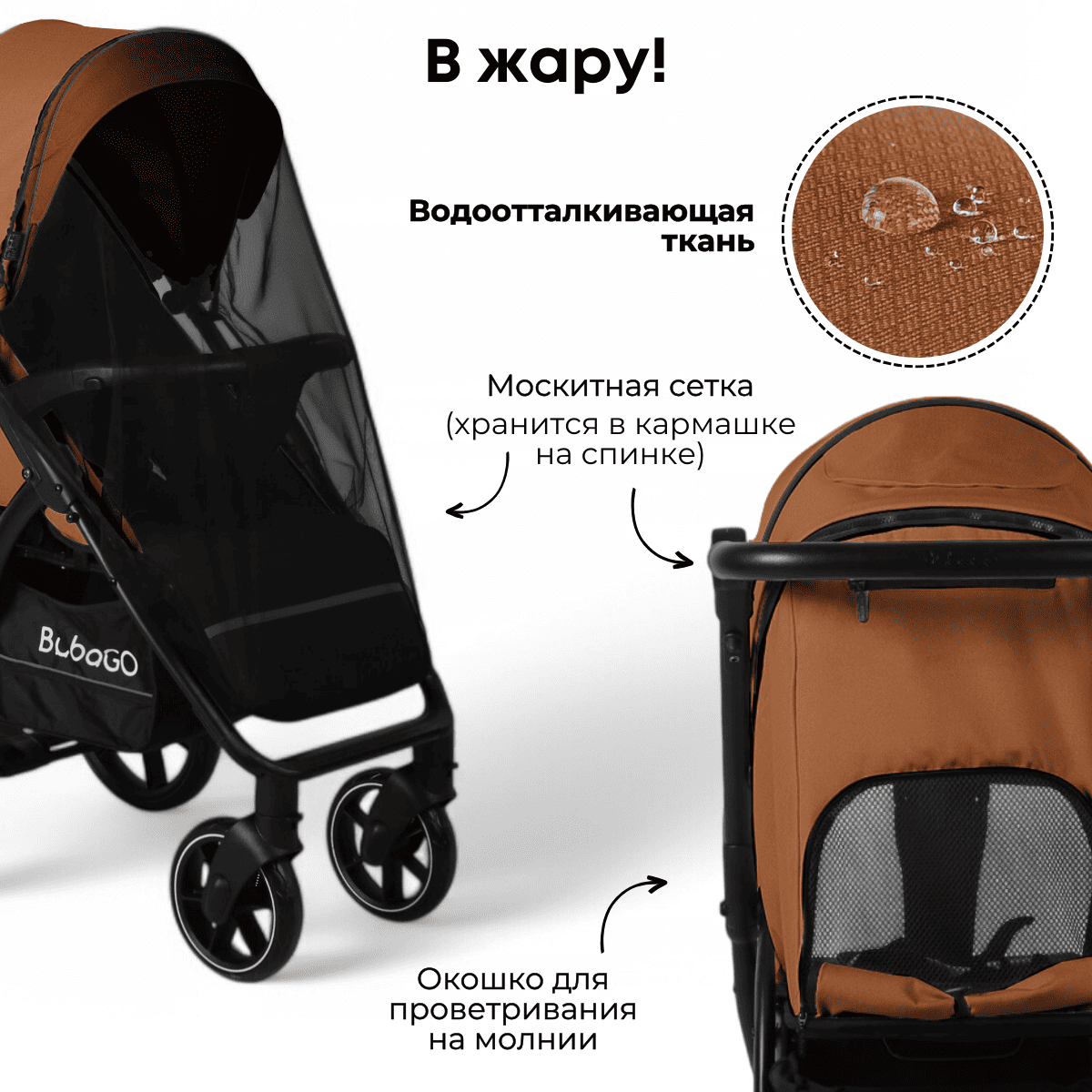 • Москитная сетка и дождевик защищают от насекомых и непогоды в любое время года.