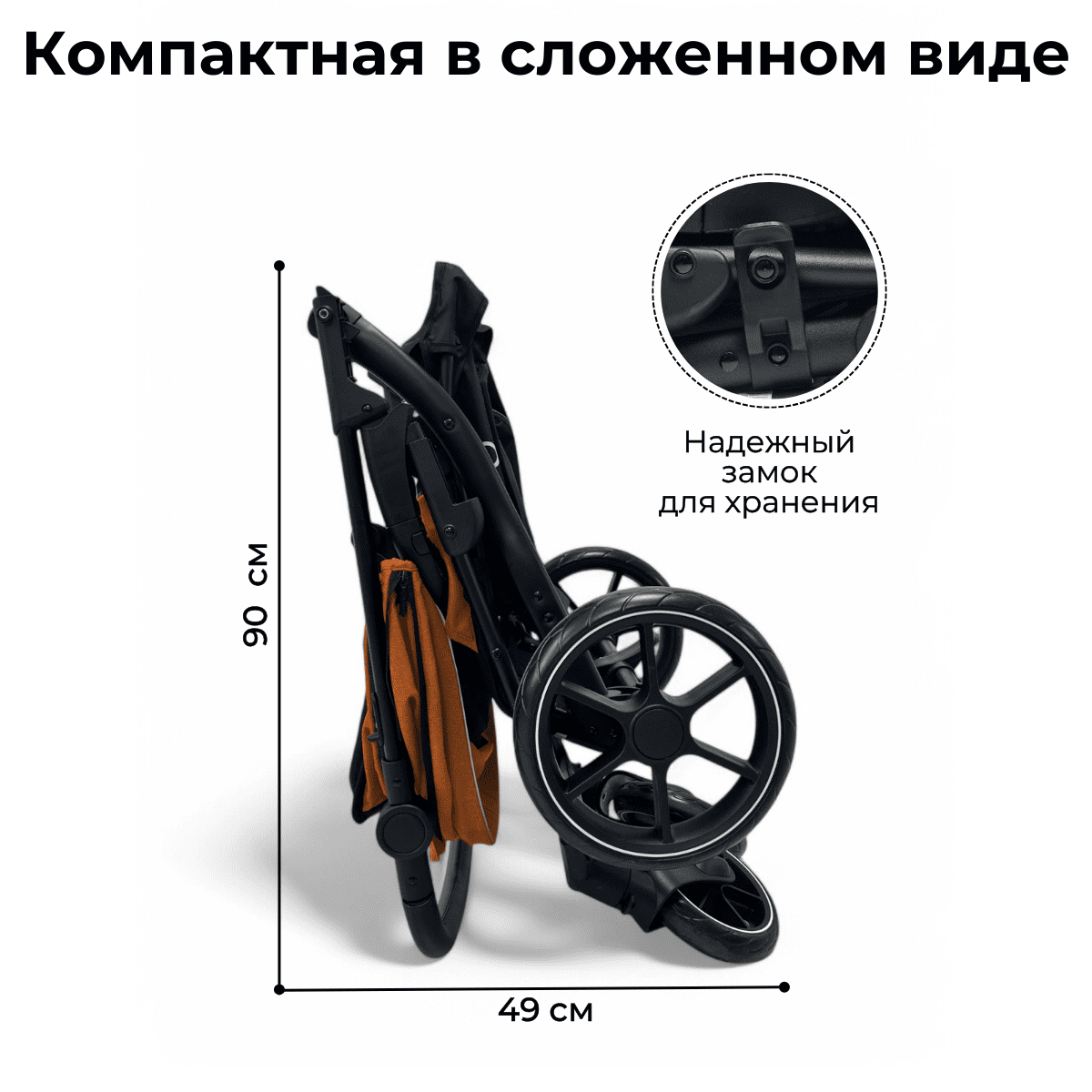 • Задняя педаль‑тормоз быстро фиксирует коляску на месте.