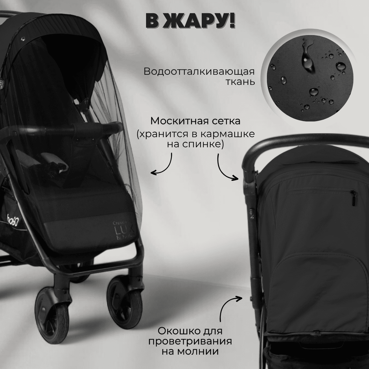 BubaGO Cross CITY LUX подойдёт родителям, которые хотят одну универсальную прогулочную коляску на весь период использования — для города, парков, поездок за город и прогулок в любой сезон.
