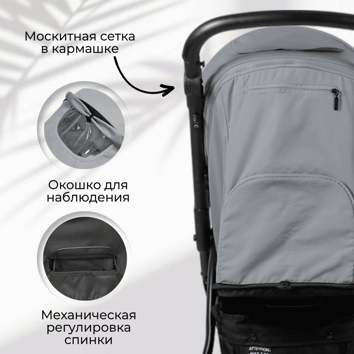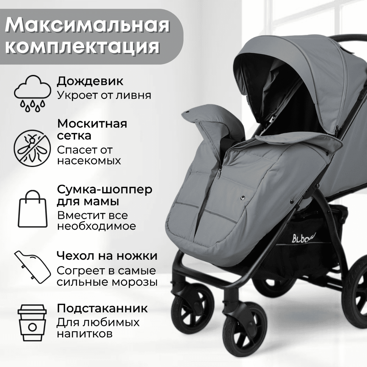 В комплекте: дождевик, москитная сетка, тёплый чехол на ножки, подстаканник, сумка-шоппер, которая крепится к ручке.