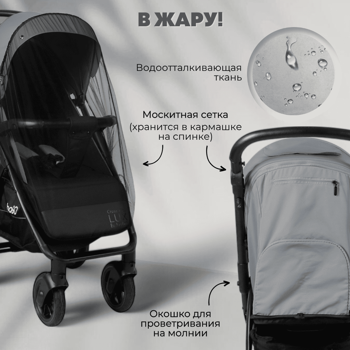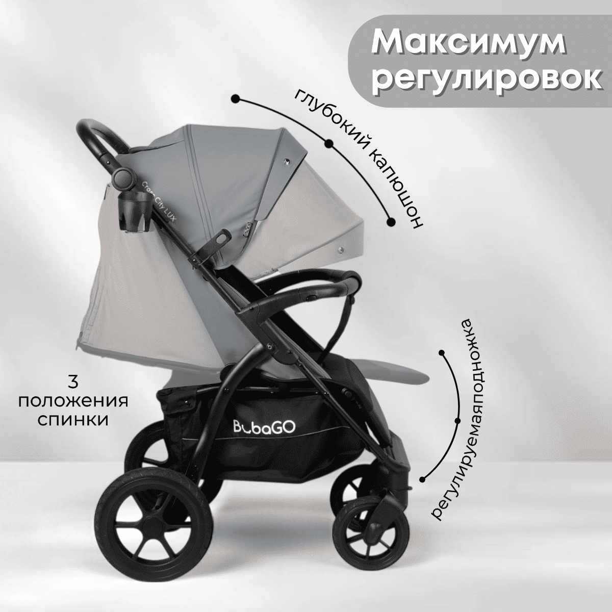 BubaGO Cross CITY LUX подойдёт родителям, которые хотят одну универсальную прогулочную коляску на весь период использования — для города, парков, поездок за город и прогулок в любой сезон.