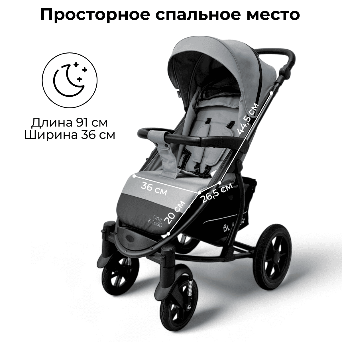 Просторное спальное место 91×36 см — удобно для сна и длительных прогулок.