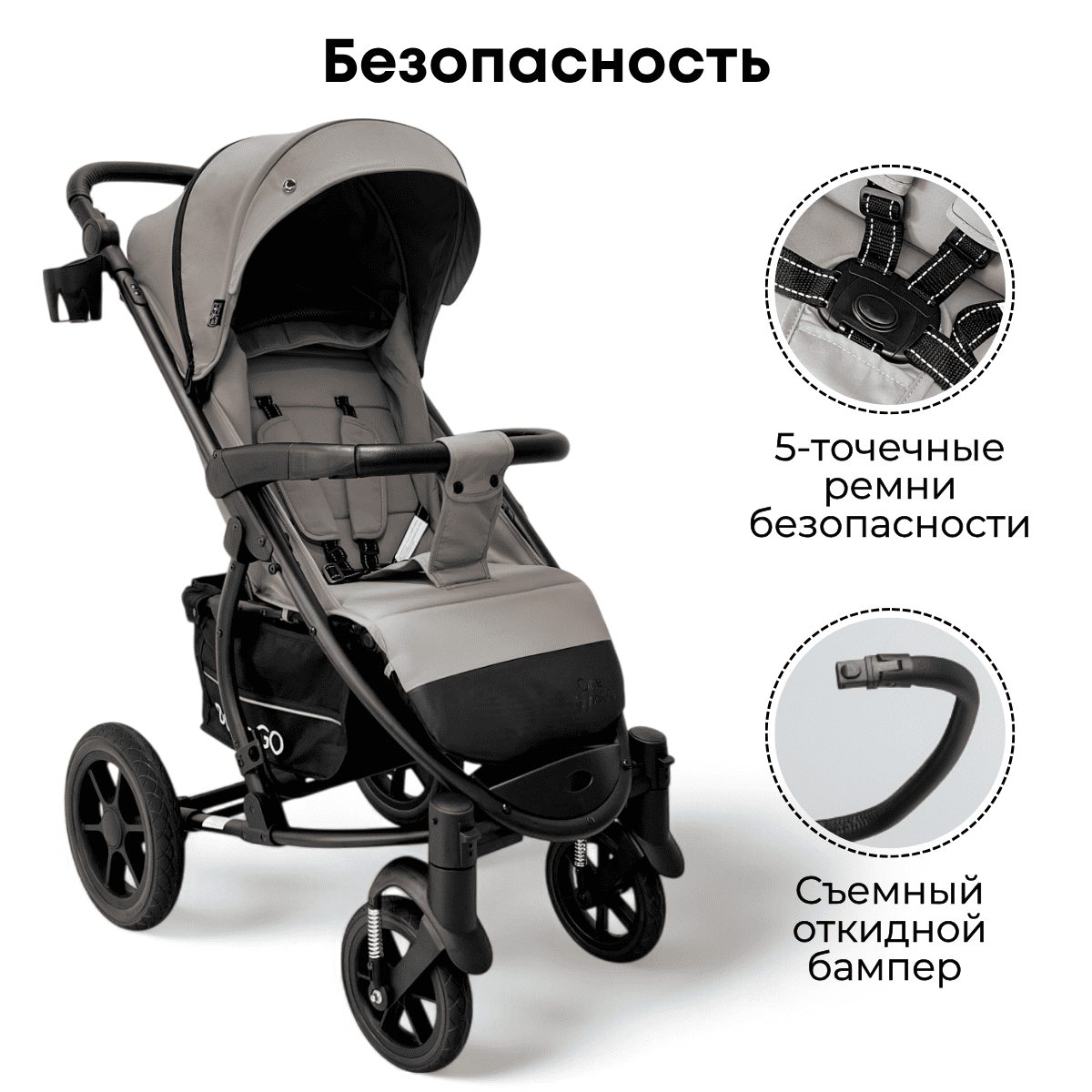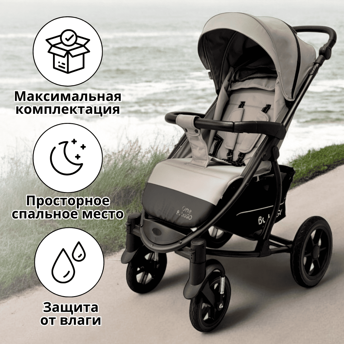 Прогулочная коляска BubaGO Model One — всесезонная коляска с усиленной рамой, большими колесами и продуманным комфортом для ребёнка и родителей.
