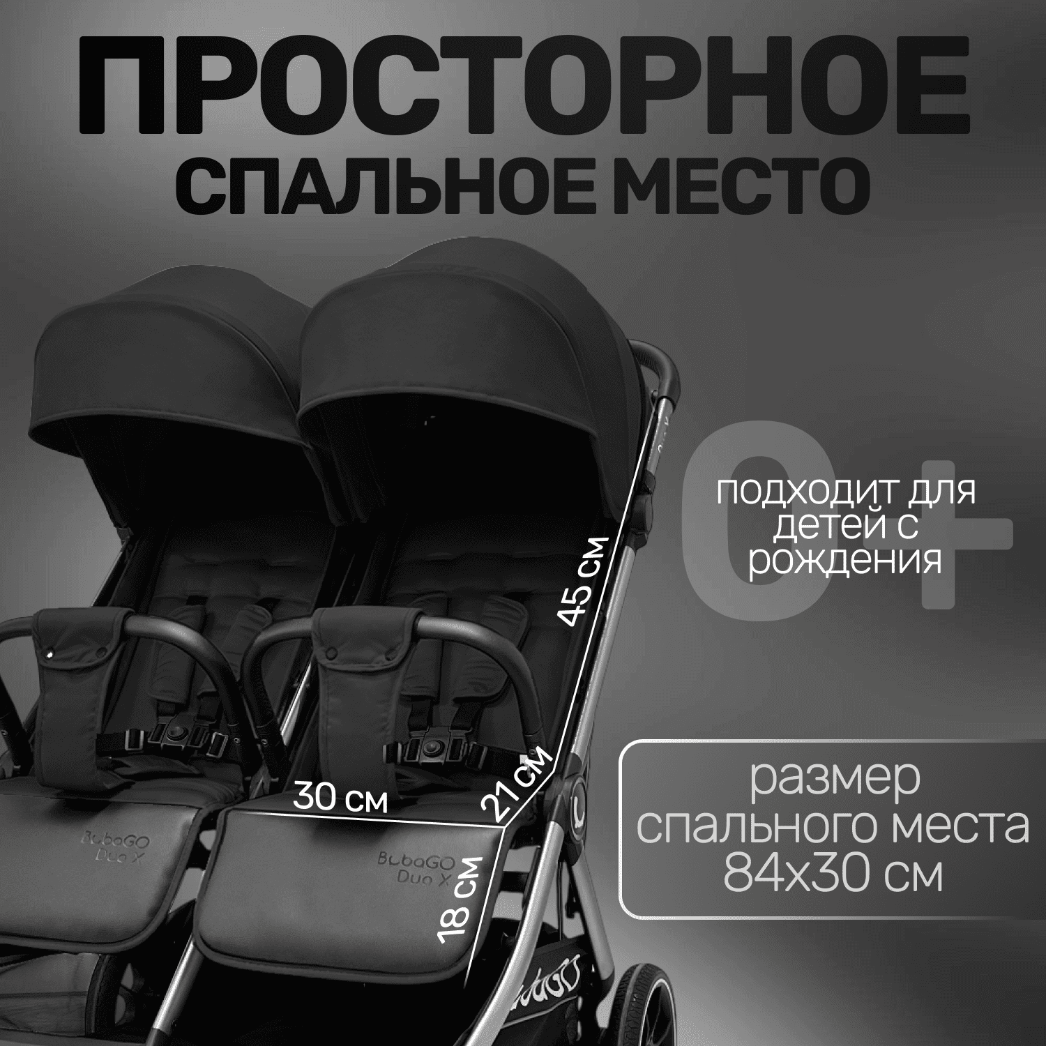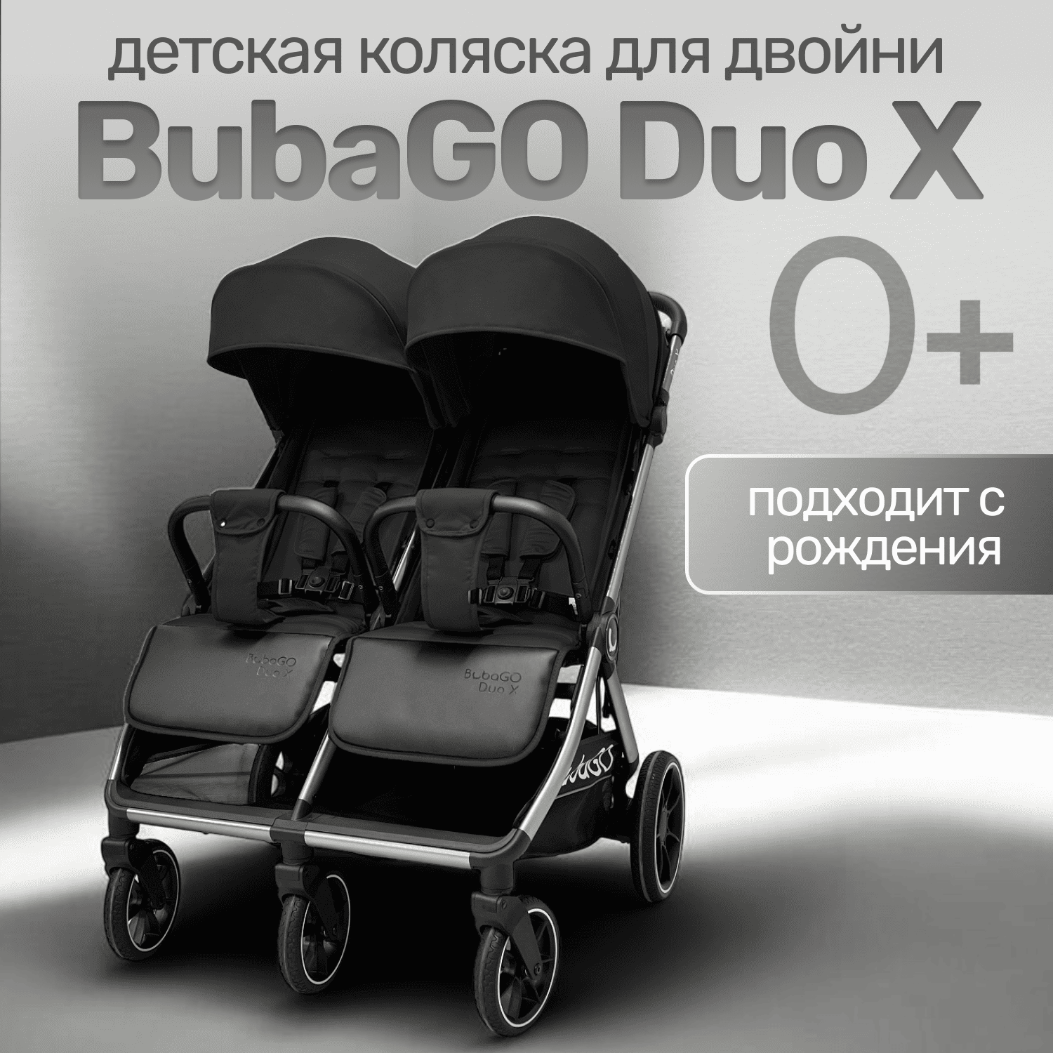 Прогулочная коляска для двойни BubaGO DUO X — комфорт, манёвренность и компактность для ежедневных прогулок в городе.