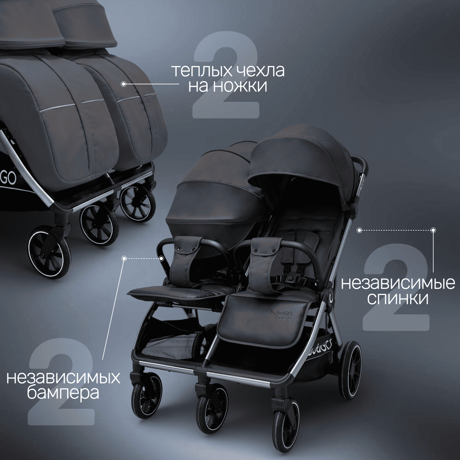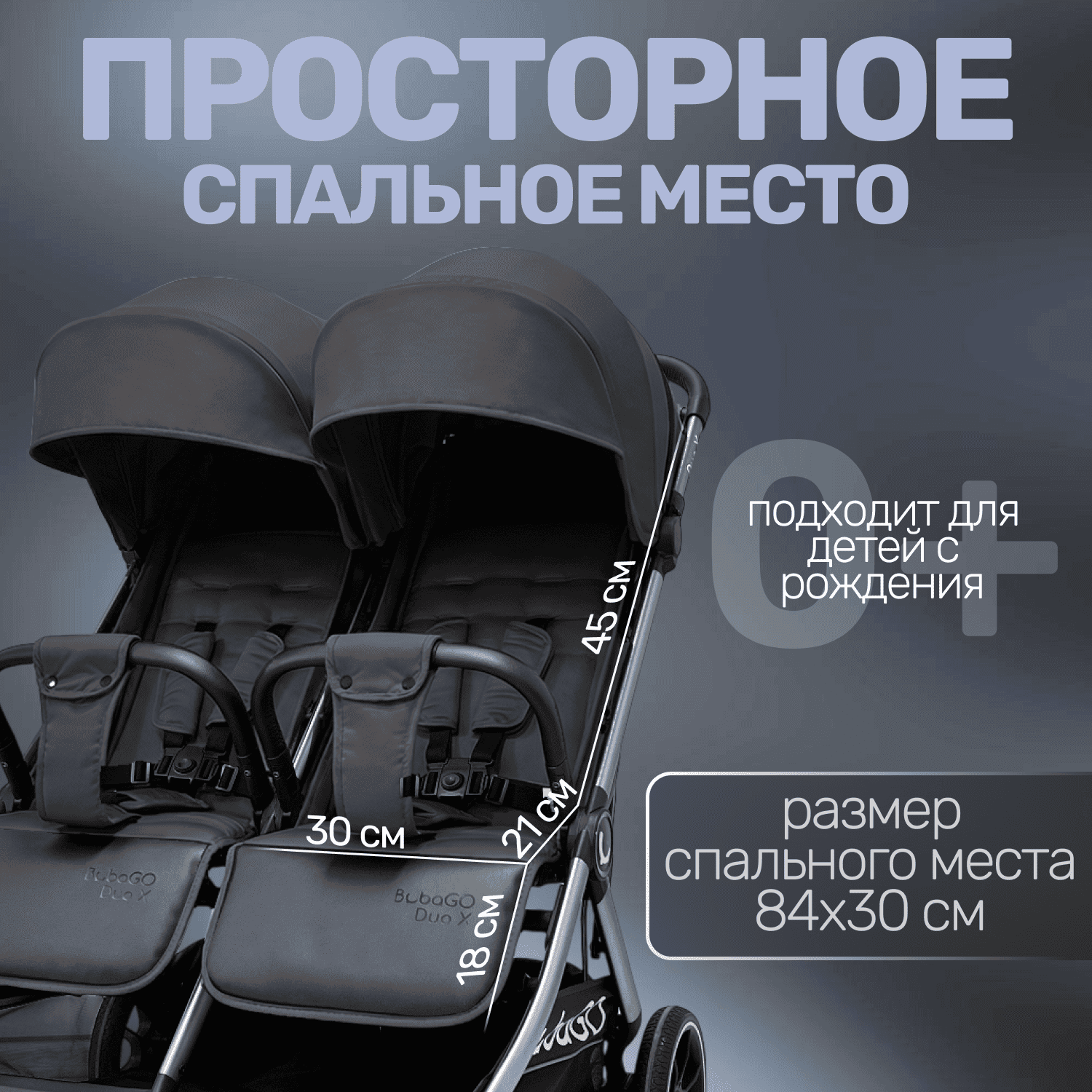 Прогулочная коляска для двойни BubaGO DUO X — комфорт, манёвренность и компактность для ежедневных прогулок в городе.