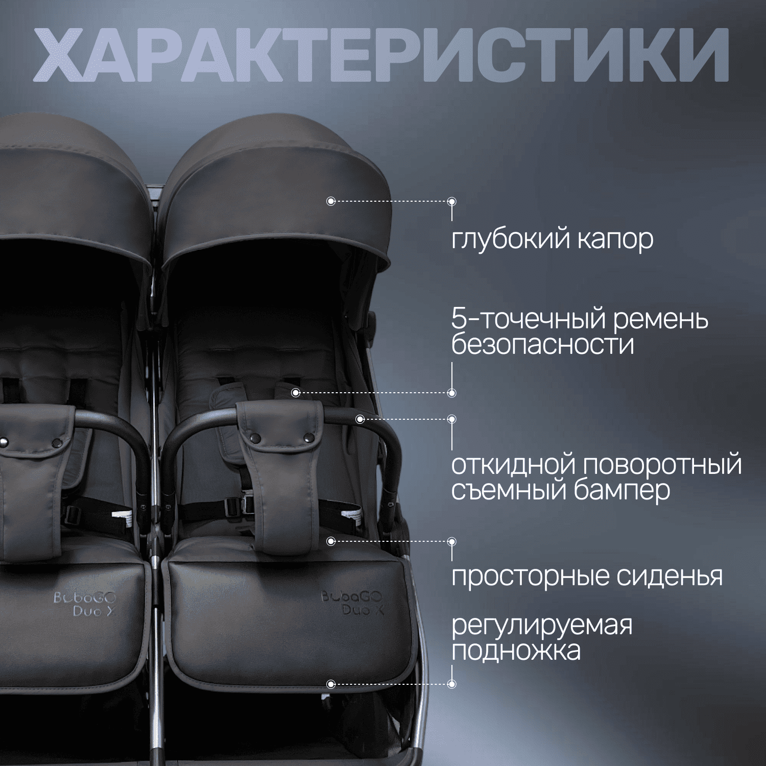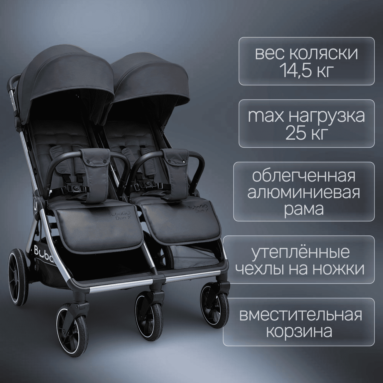 Прогулочная коляска для двойни BubaGO DUO X создана для активных родителей, сочетает удобство управления, продуманную эргономику для двух малышей и компактное автоматическое складывание.