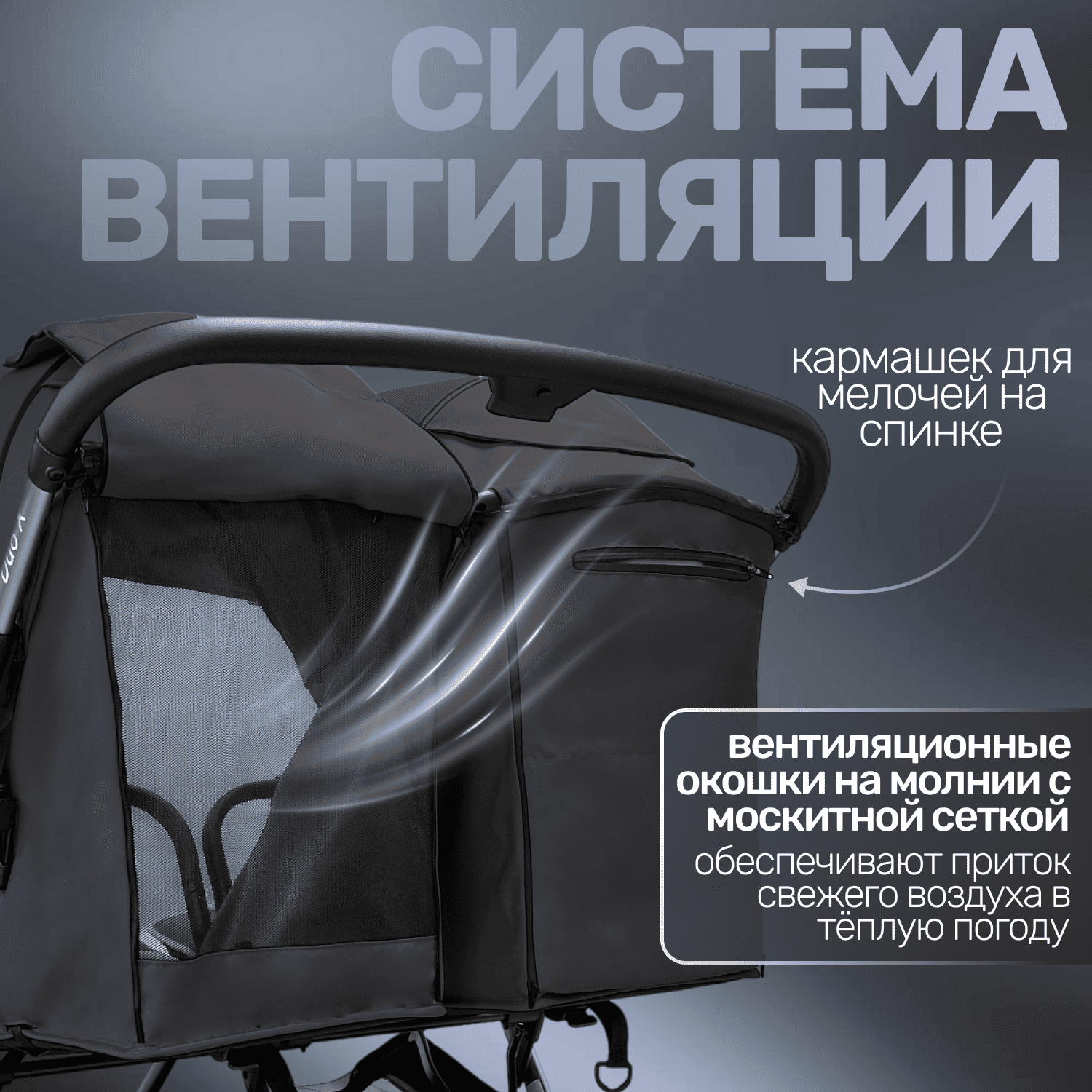 В комплекте: дождевик и москитная сетка. Утеплённые чехлы на ножки с молнией.
