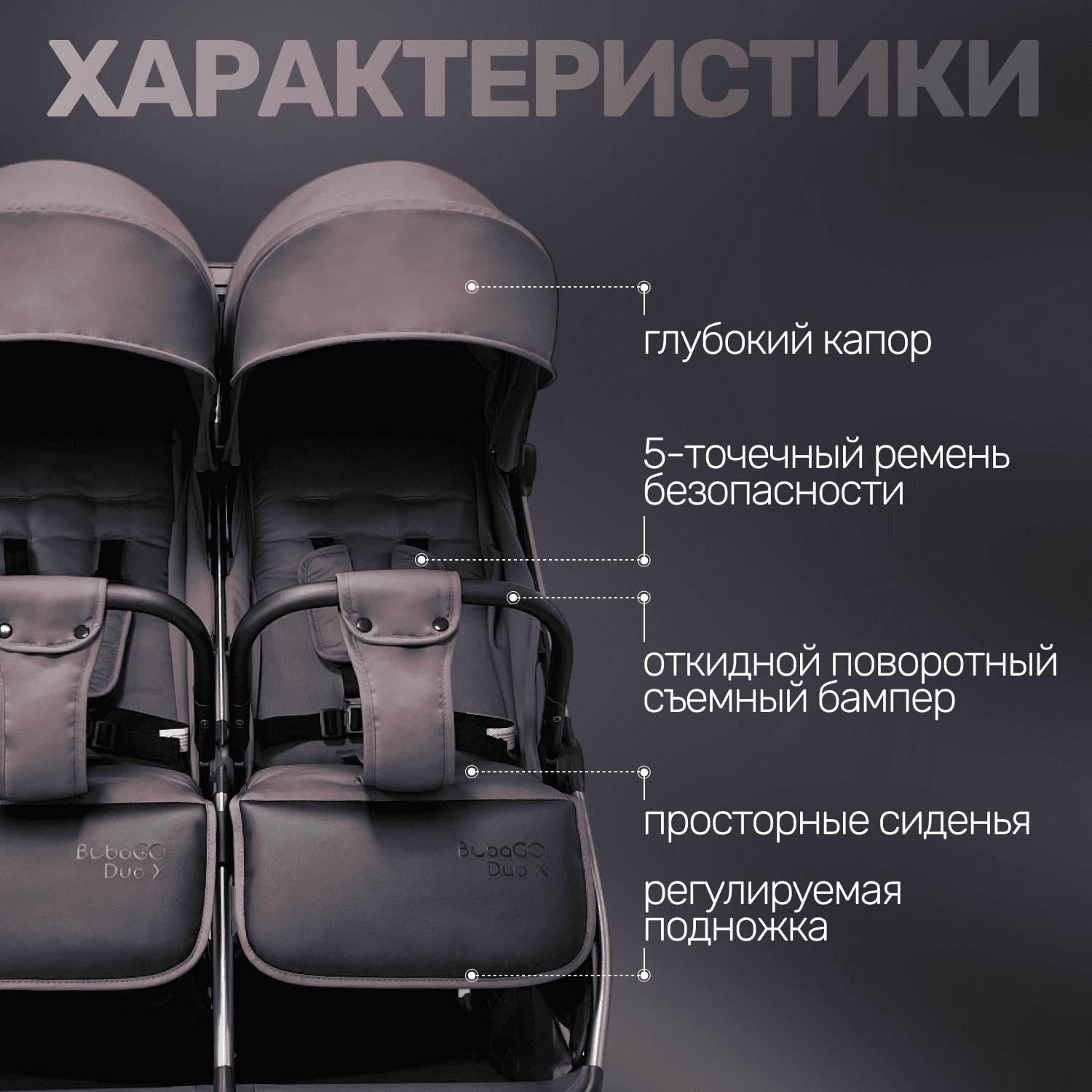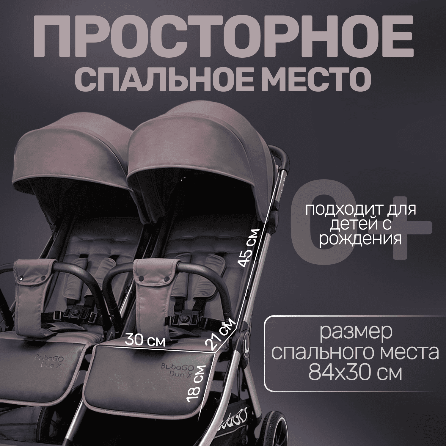 Прогулочная коляска для двойни BubaGO DUO X создана для активных родителей, сочетает удобство управления, продуманную эргономику для двух малышей и компактное автоматическое складывание.