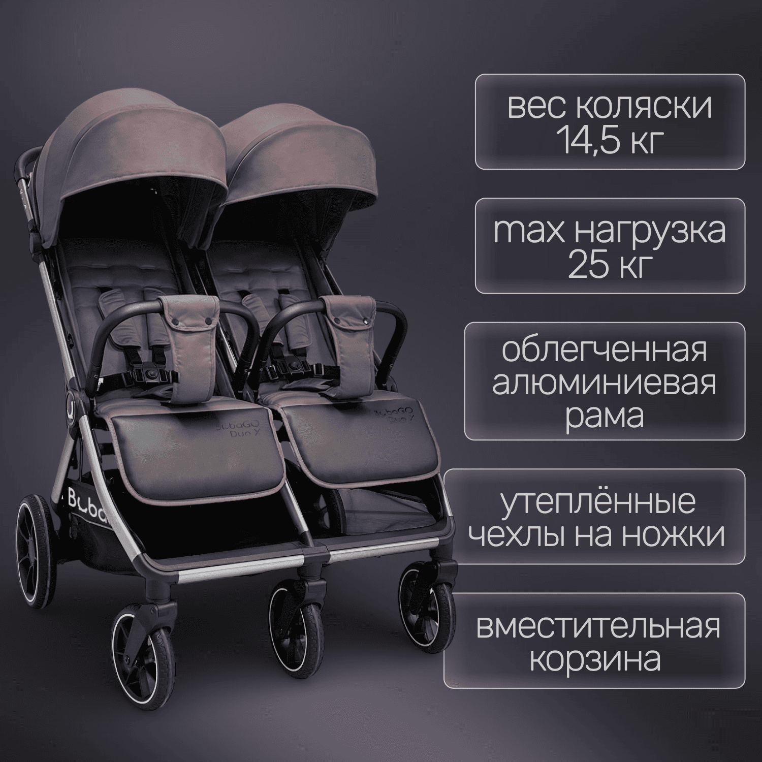 Прогулочная коляска для двойни BubaGO DUO X — комфорт, манёвренность и компактность для ежедневных прогулок в городе.