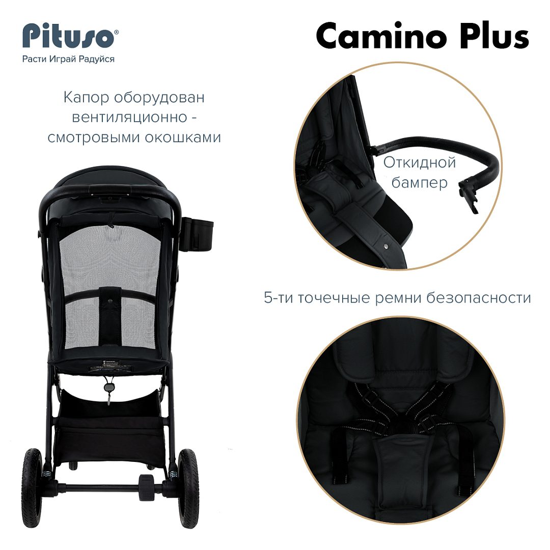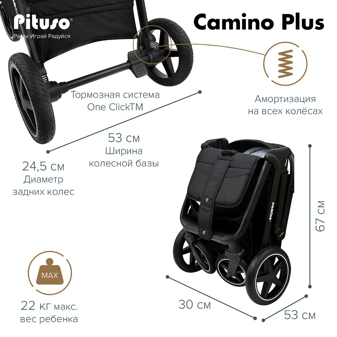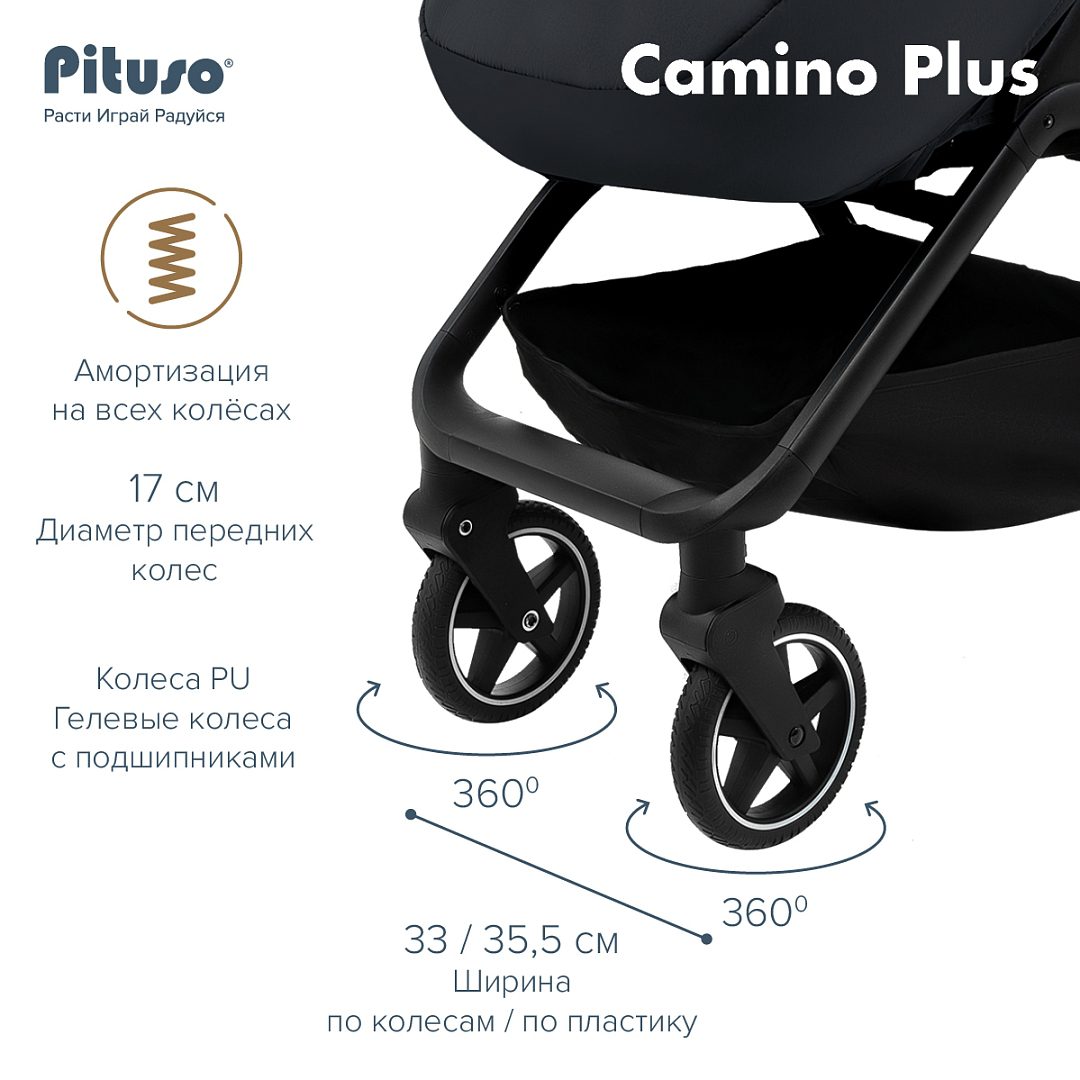 Прогулочная PITUSO CAMINO Plus – лёгкая, манёвренная и всесезонная прогулочная коляска с увеличенными колёсами, рассчитанная на детей весом до 22 кг. Это удобное решение для ежедневных прогулок по городу и парку, поездок по неровным тротуарам и природным тропам.