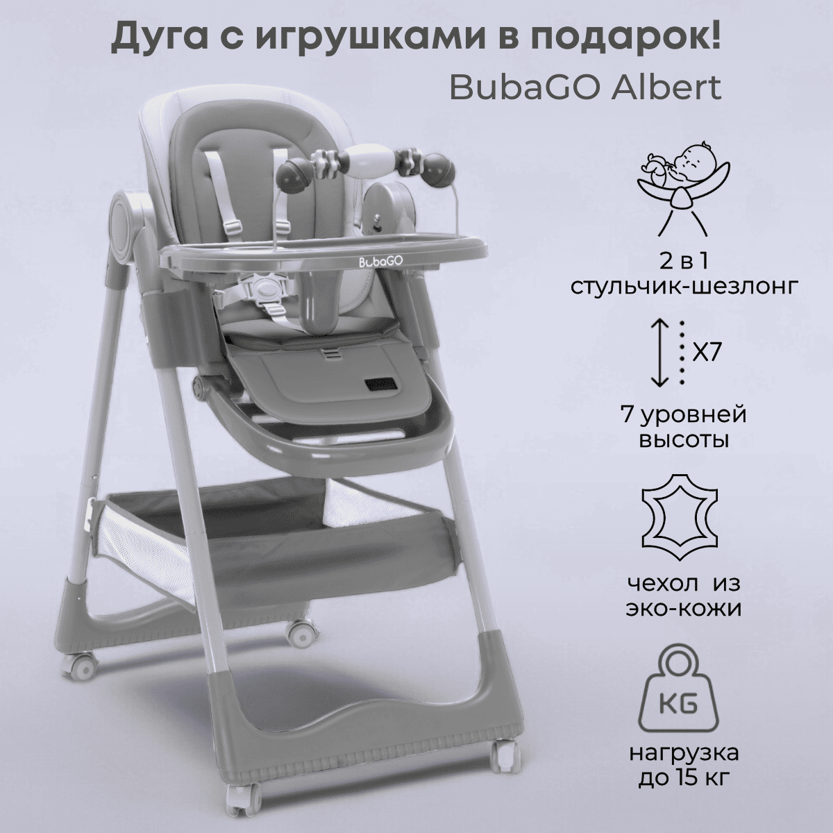 Стульчик-шезлонг для кормления BubaGO Albert — это ежедневный комфорт для малыша с первых месяцев жизни. Модель сочетает функции стульчика для кормления и удобного шезлонга, подходит для приёма пищи, игр и отдыха и легко вписывается в интерьер кухни или столовой, не занимая много места.