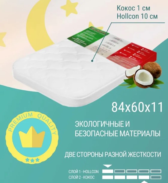 Сторона А (жесткая) — латексированное кокосовое волокно (10 мм)