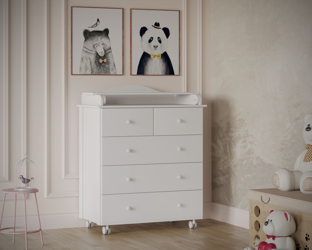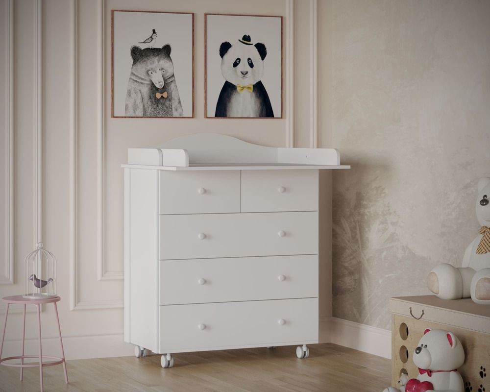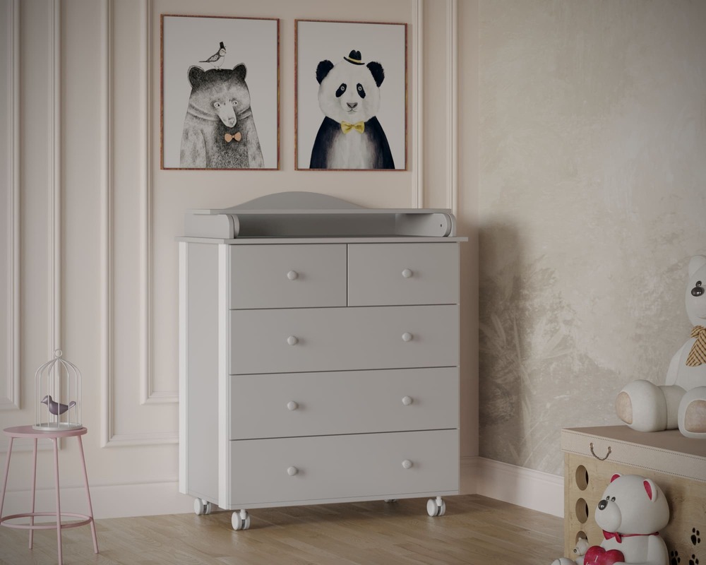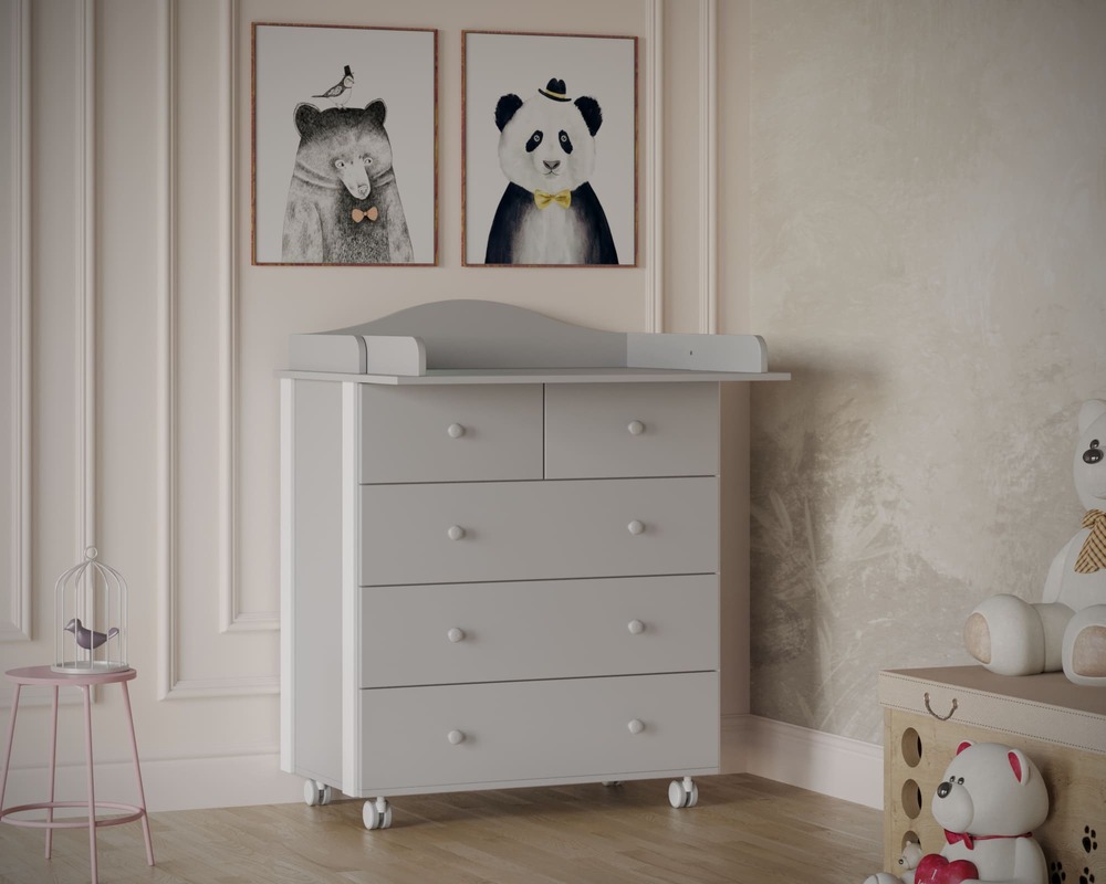 Пять ящиков обеспечивают раздельное хранение одежды, пелёнок, постельного белья и средств ухода, упрощая ежедневный уход за ребёнком.
