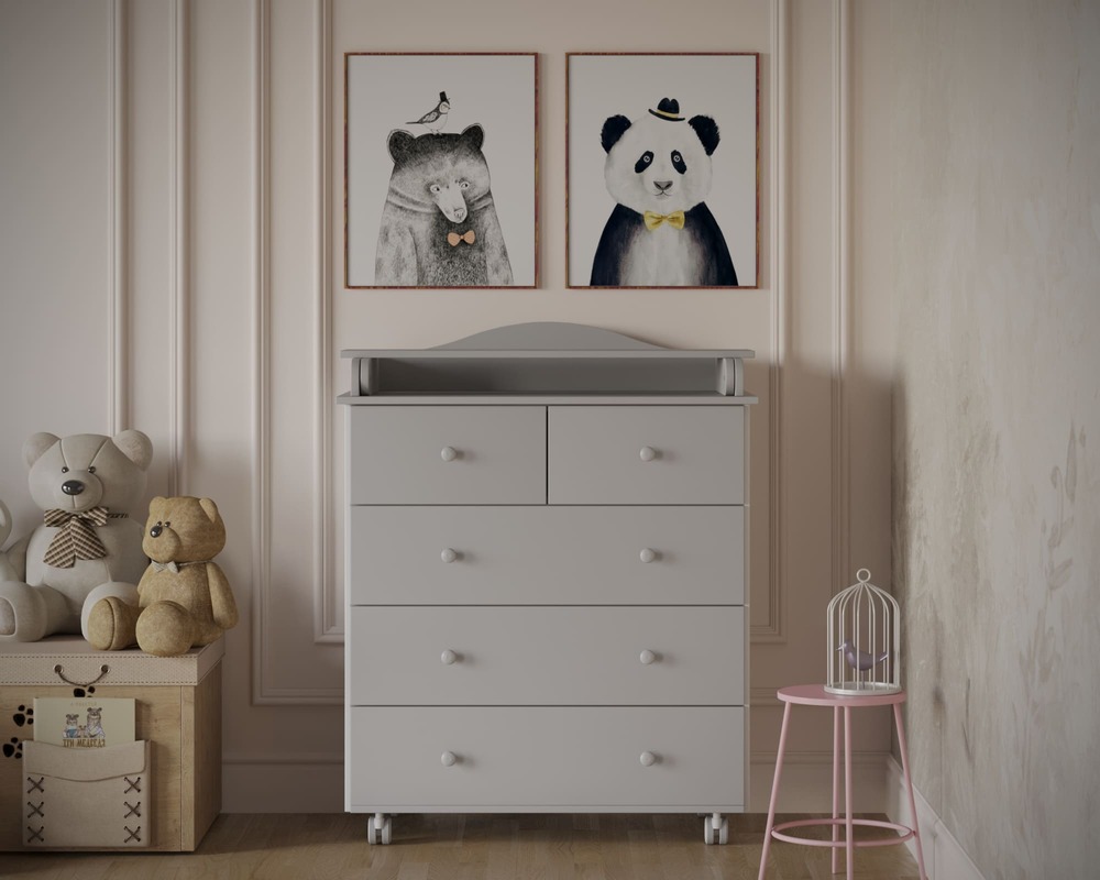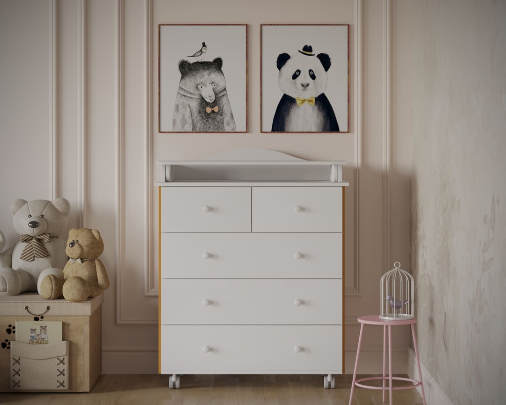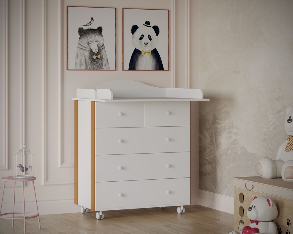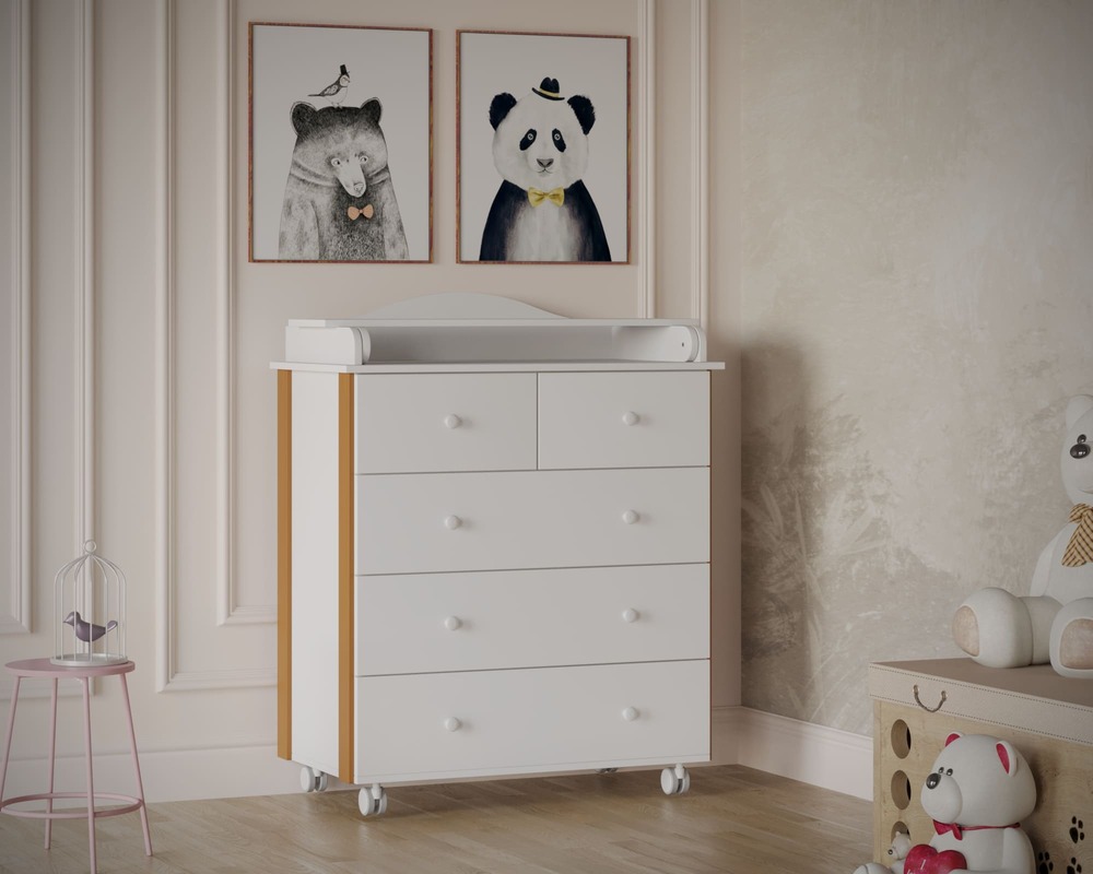 Пять ящиков обеспечивают раздельное хранение одежды, пелёнок, постельного белья и средств ухода, упрощая ежедневный уход за ребёнком.