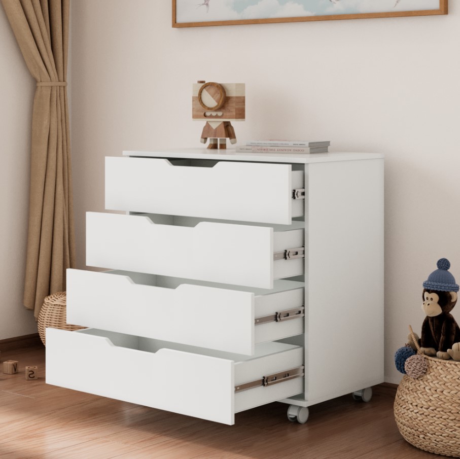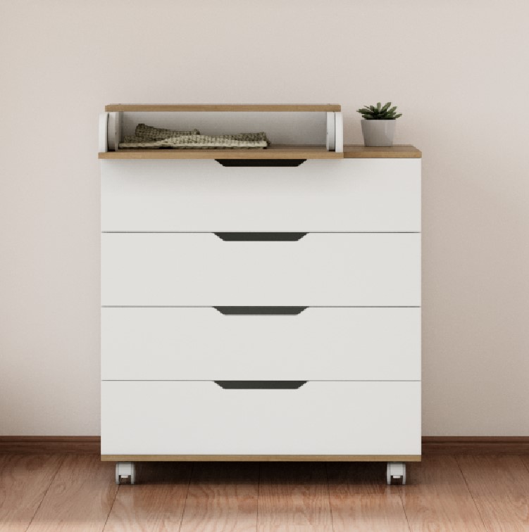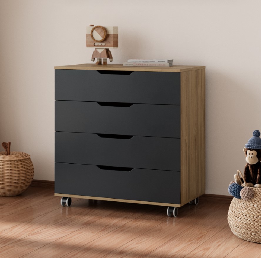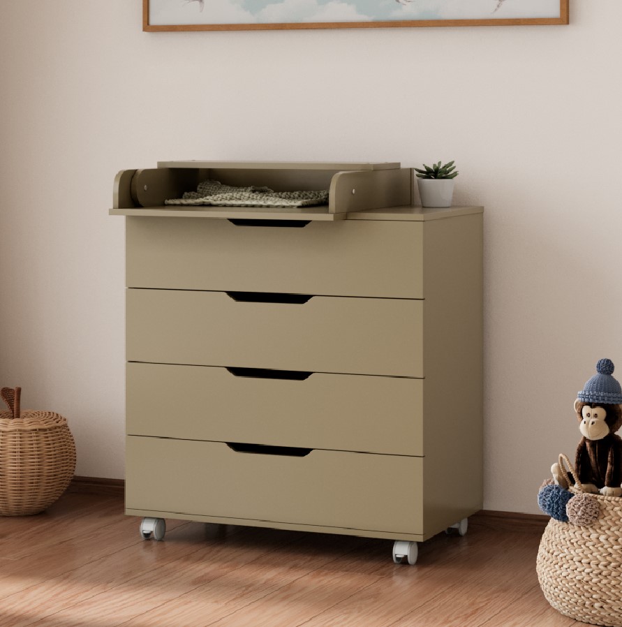 — Фасад комода выполнен из высококачественной МДФ, корпус из ЛДСП Egger (Германия) с классом эмиссии E1 — это самый безопасный уровень, подходящий для детской и медицинской мебели. Для открытия ящиков предусмотрены безопасные ручки.