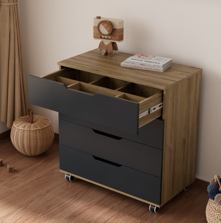 — Четыре вместительных ящика (ширина 800 мм) выдвигаются плавно и бесшумно благодаря шарикоподшипниковым телескопическим направляющим. В верхнем ящике – переставляемый органайзер для хранения мелочей.