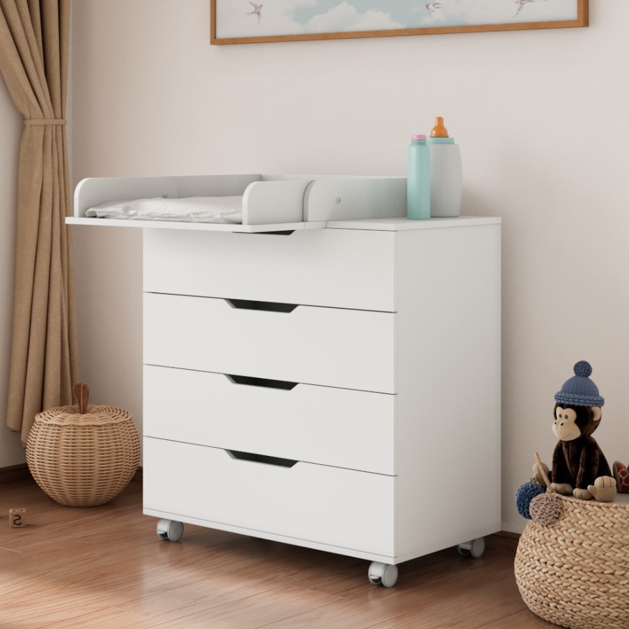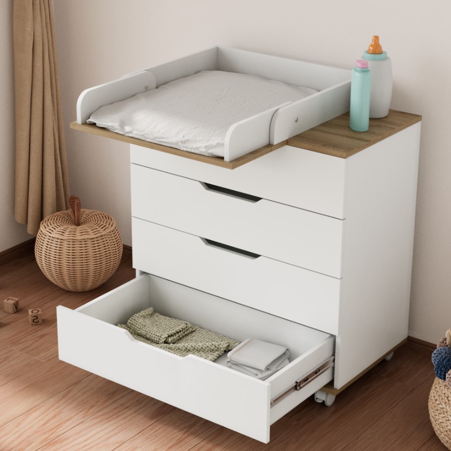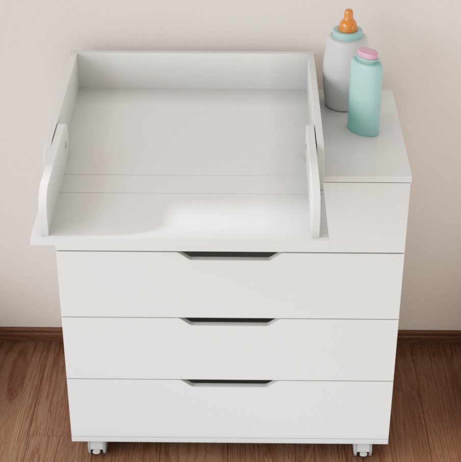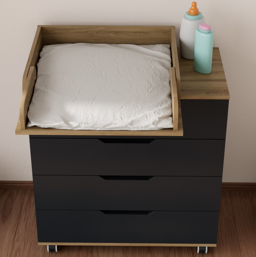 — Пеленальный столик складывается и легко снимается, позволяя быстро превратить комод в обычный. Возможна установка по центру, слева или справа; после демонтажа на поверхности не остается следов.